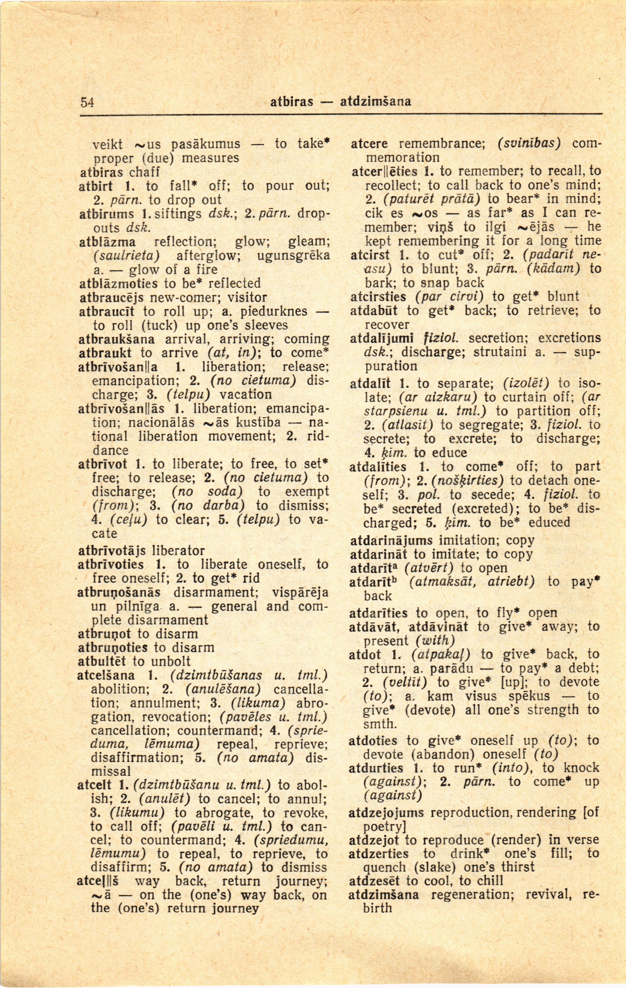 atbrīvošanllās 1. liberation;