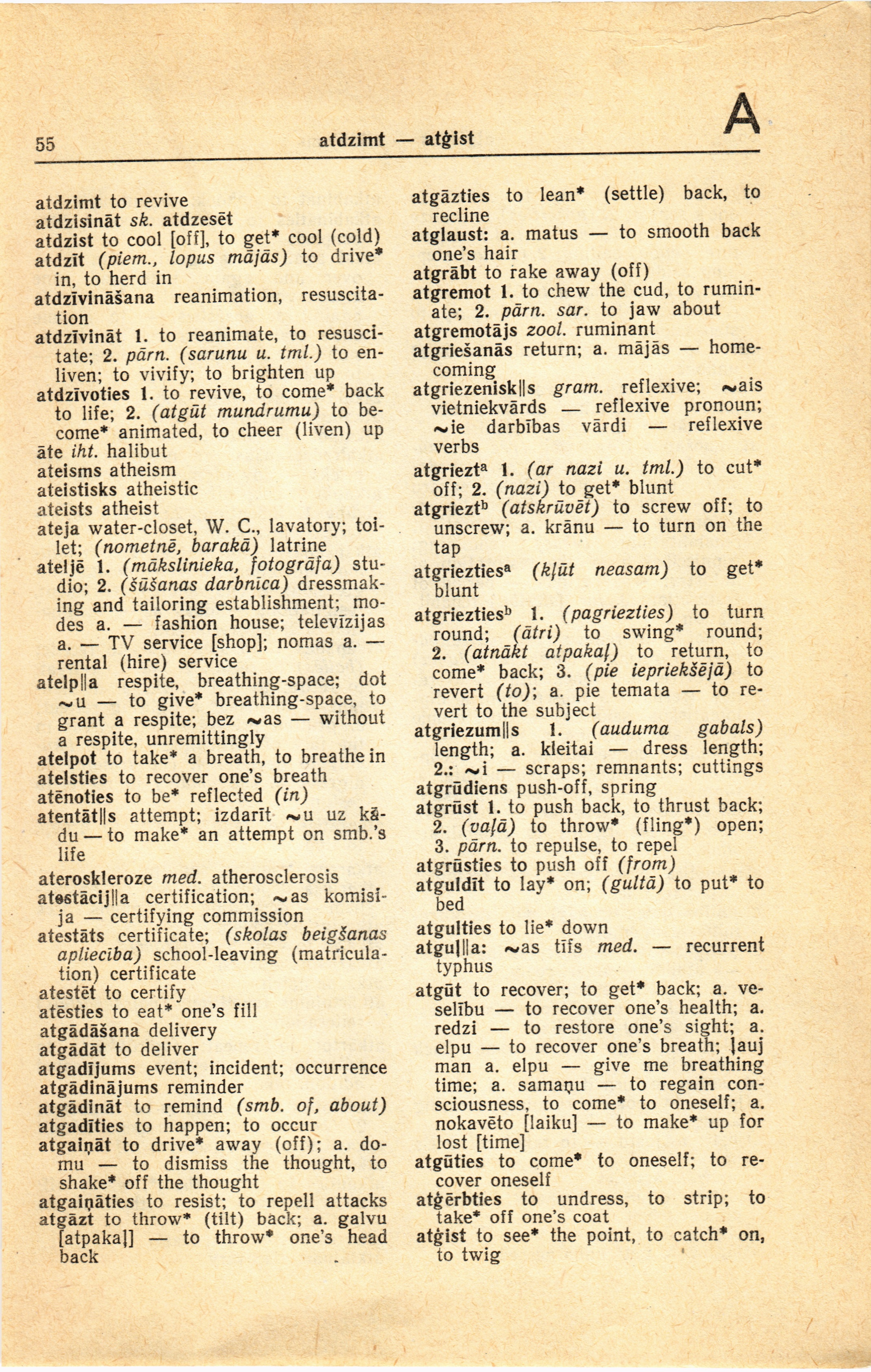 atgriezt3 1. (ar nazi u. tml.) to cut*