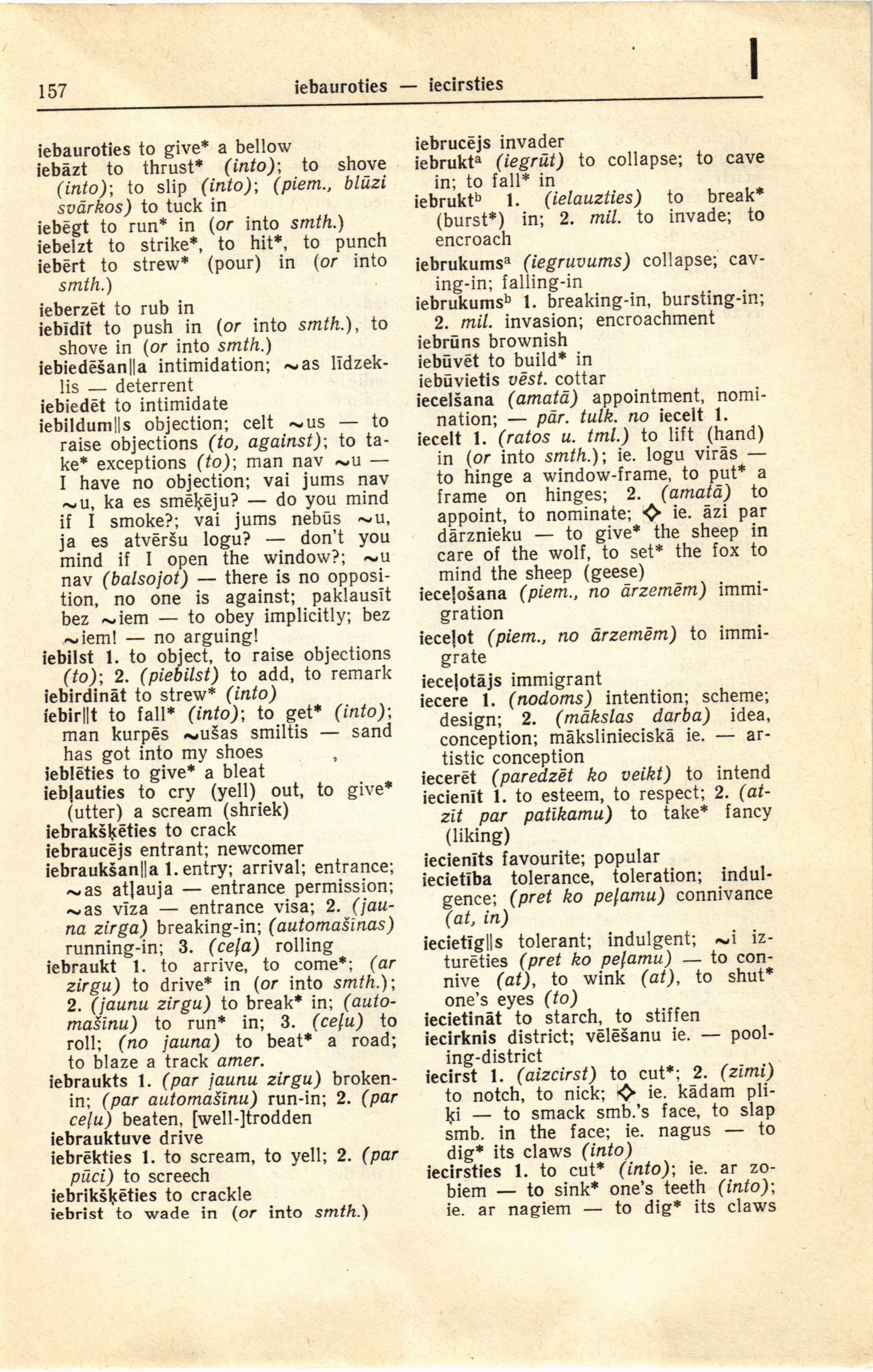 iecirst 1. (aizcirst) to cut*; 2. (zlmi)