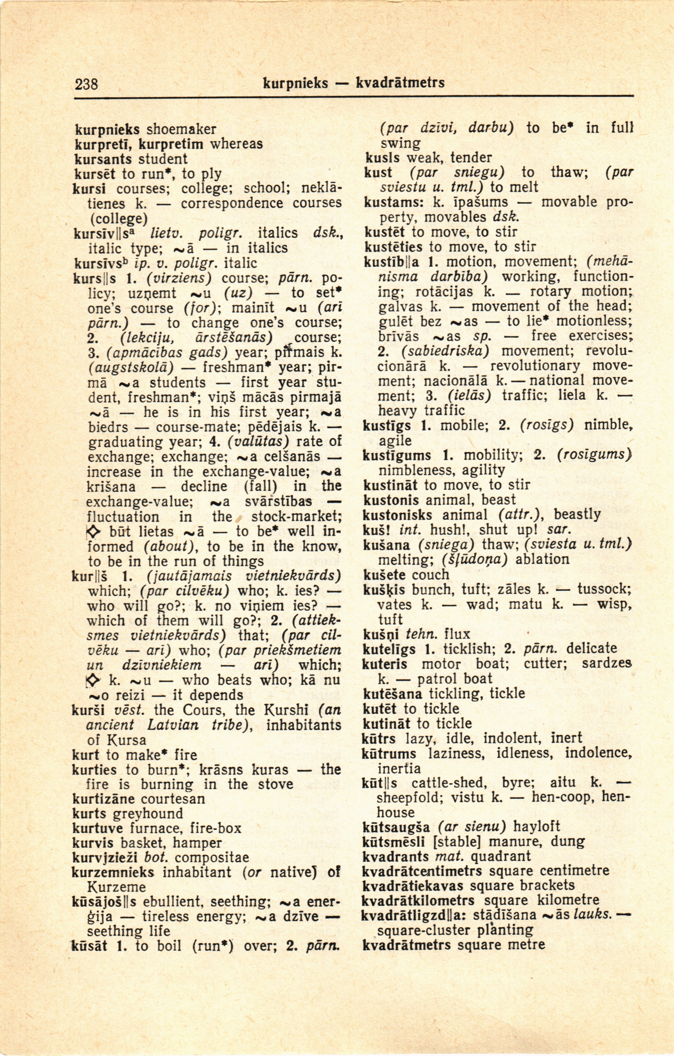 kūsāt 1. to boil (run*) over; 2. pārn.
