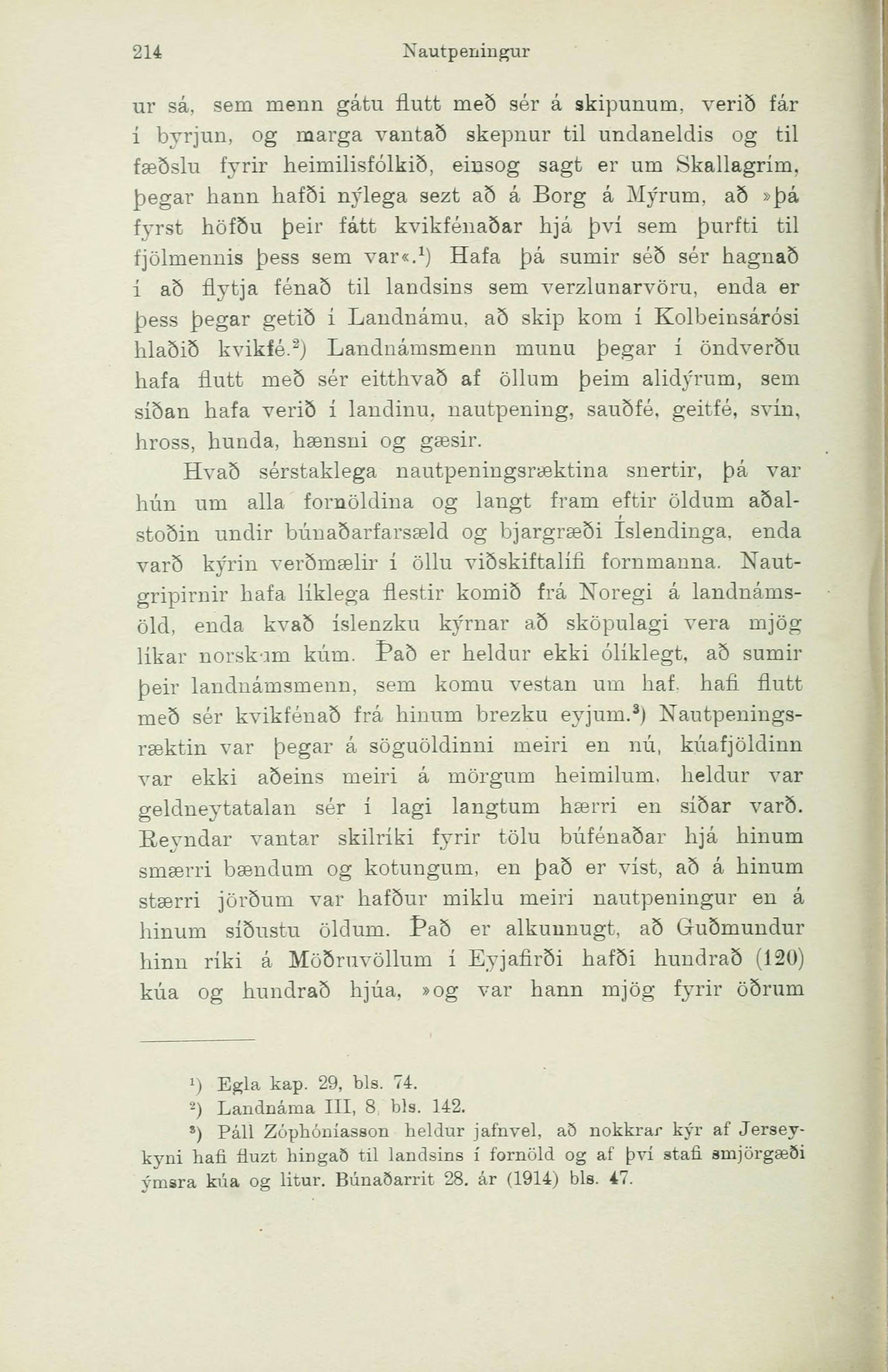 hlaðið kvikíé.2) Landnámsmenn munu þegar i öndverðu