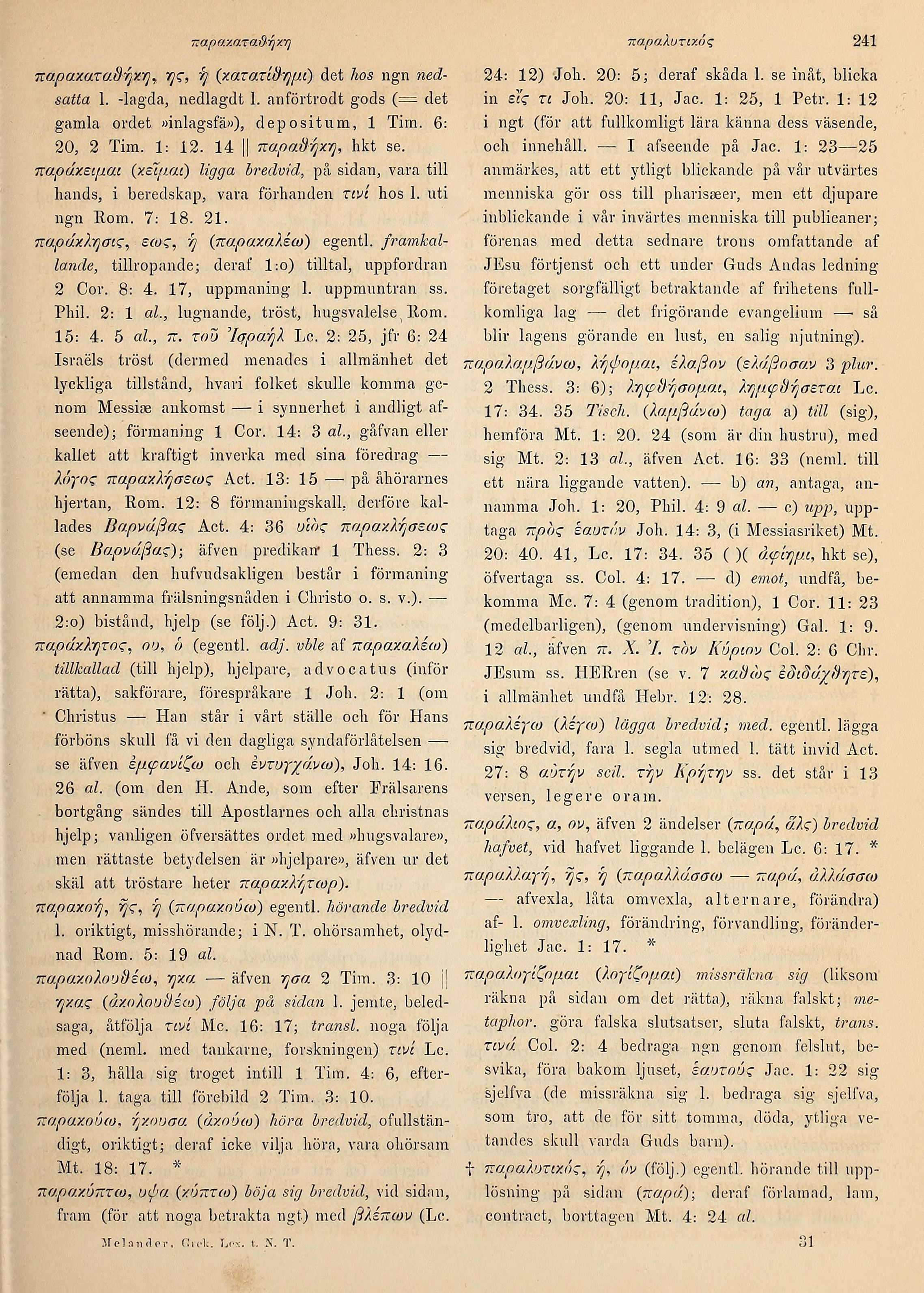 20, 2 Tim. 1: 12. 14 || παραϋήκη, hkt se.