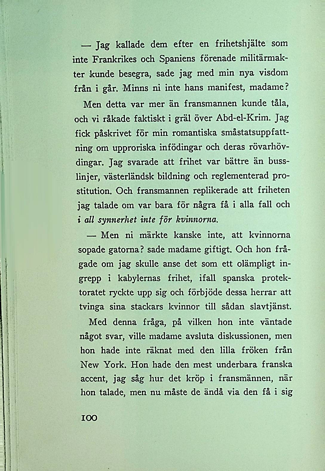 och vi råkade faktiskt i gräl över Abd-el-Krim. Jag
