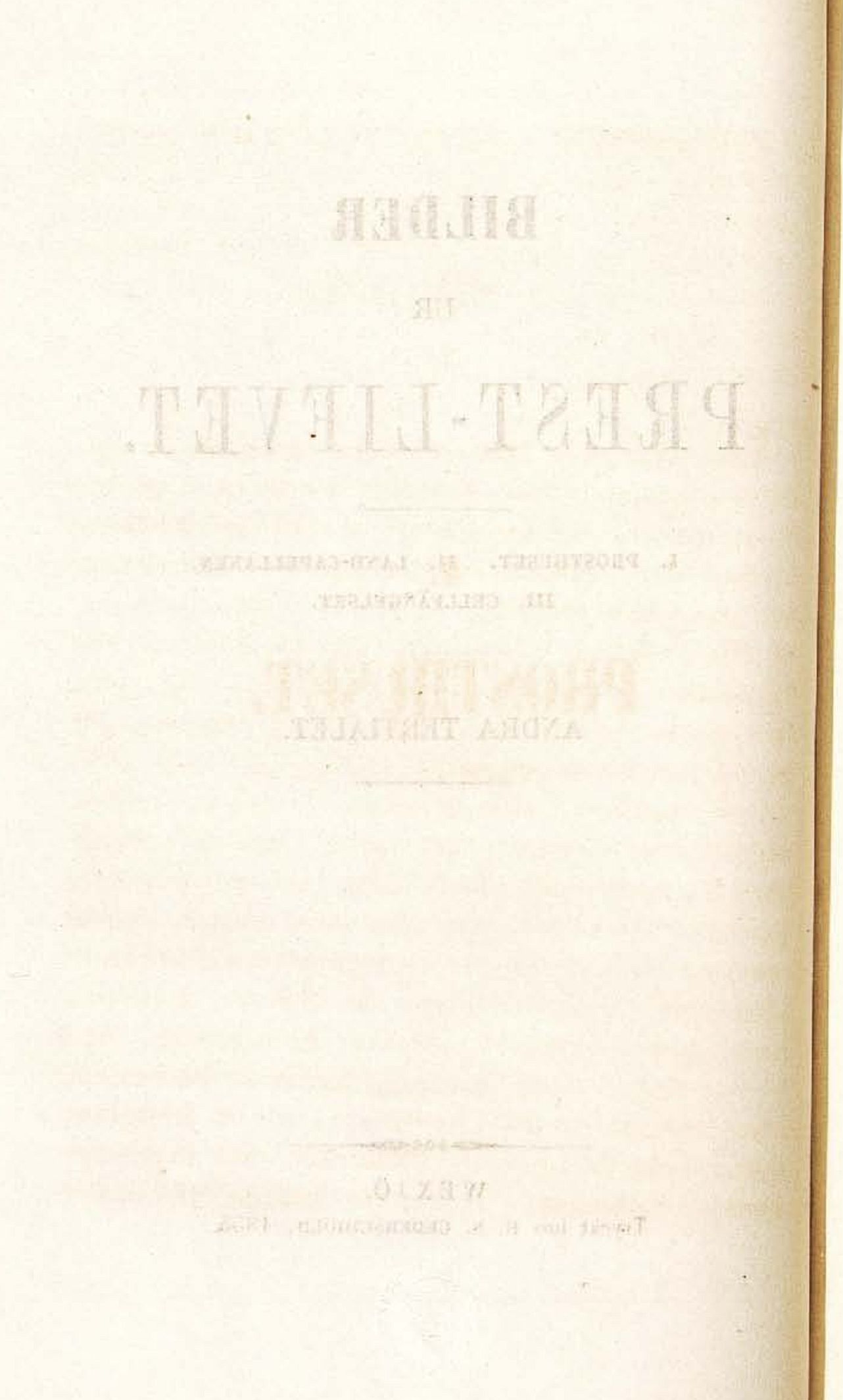 - Project Runeberg -  Bilder ur prest-lifvet / 2. Andra tertialet. I. Prosthuset. II. Land-cappelanen. III. Cellfängelset /