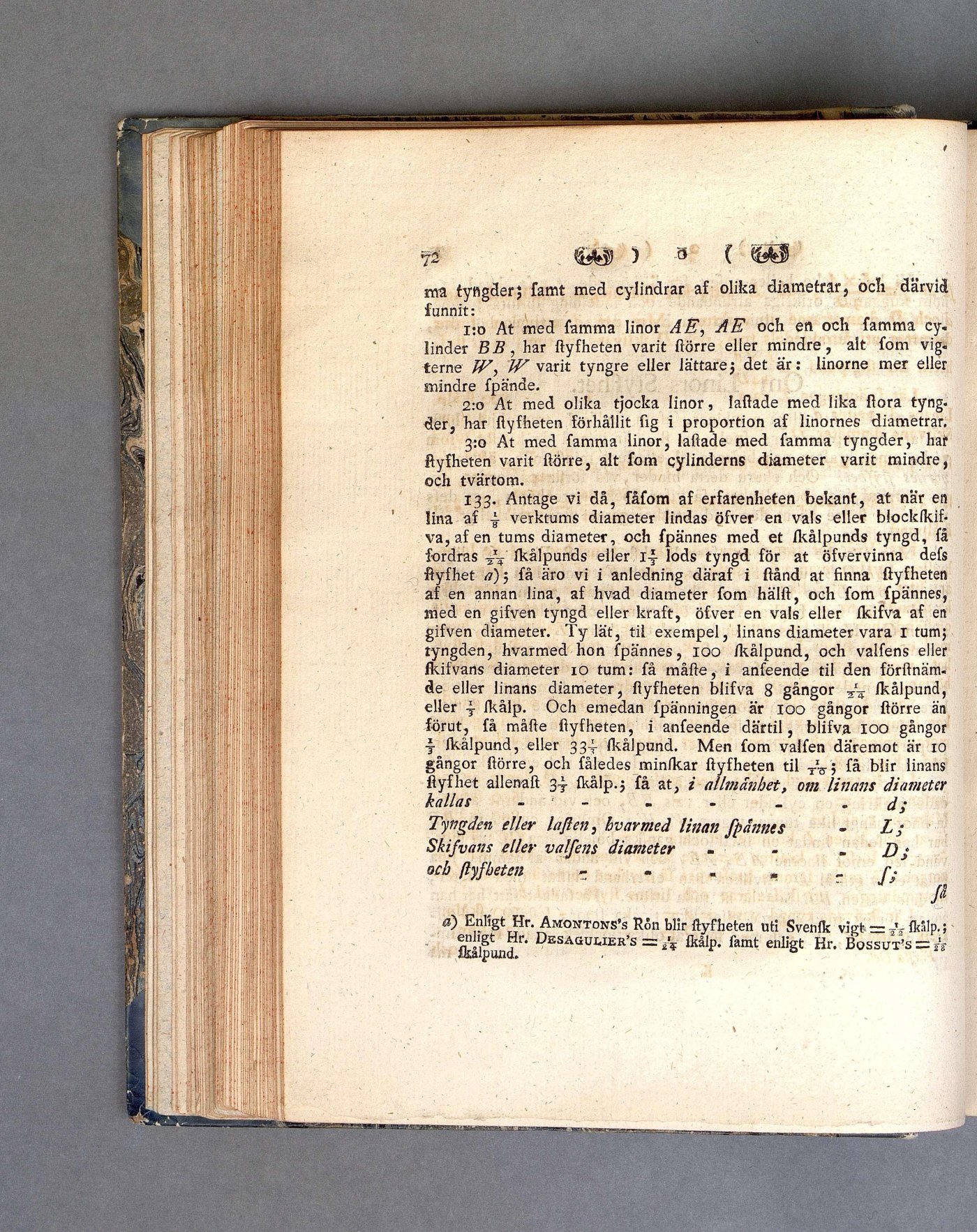 ä) Enligt Hr. Amontons’s Rön blir styfheten uti Svensk vigt = J- skålp.;