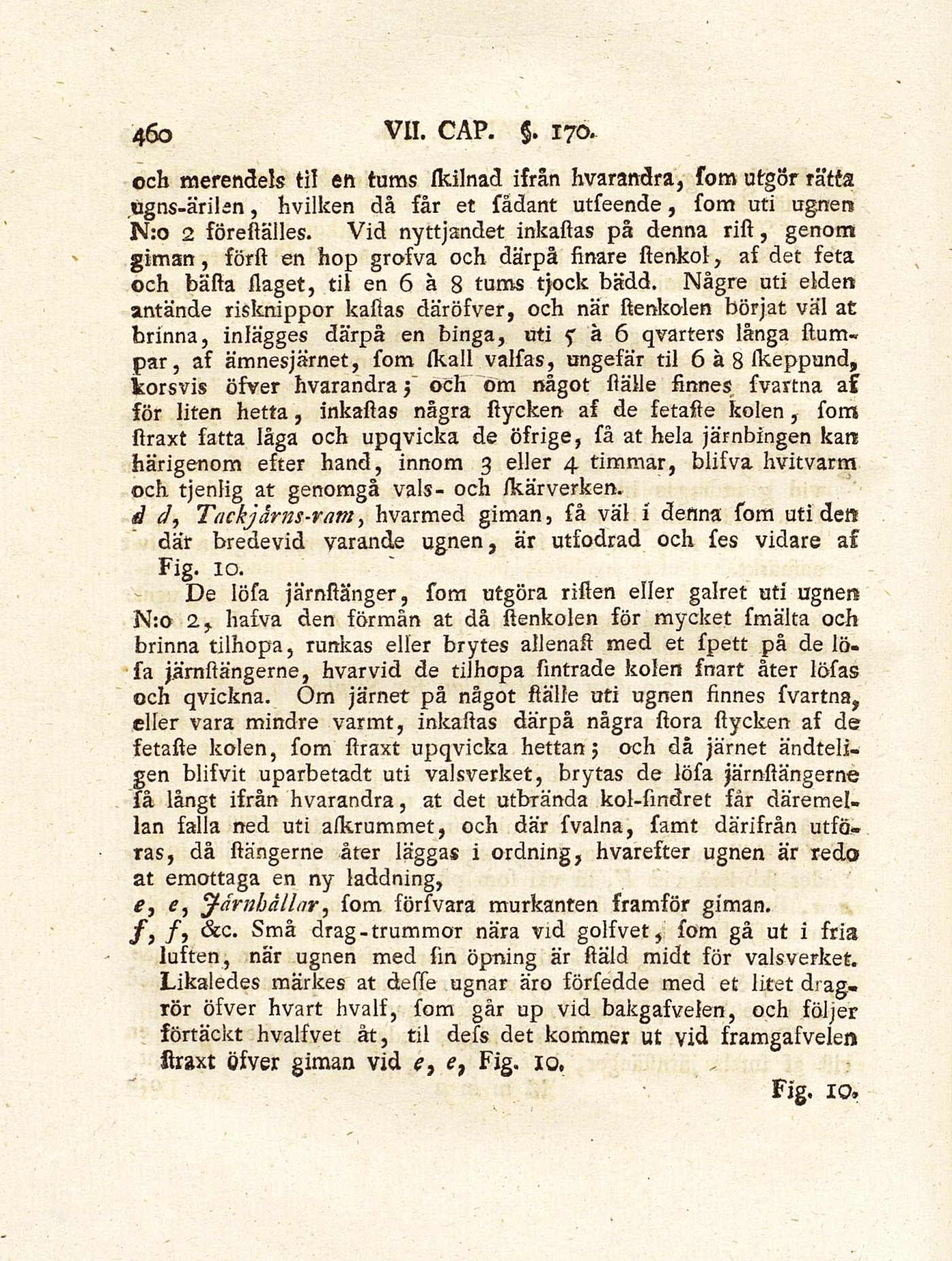 och qvickna. Öra järnet på något ställe uti ugnen finnes fvartna,