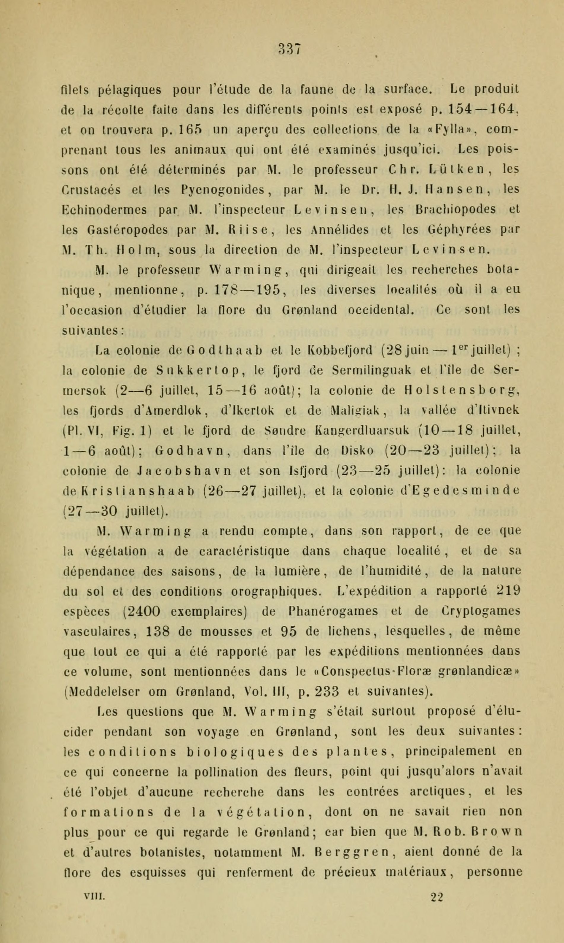 M. Warming a rendu compte, dans son rapport, de ce que