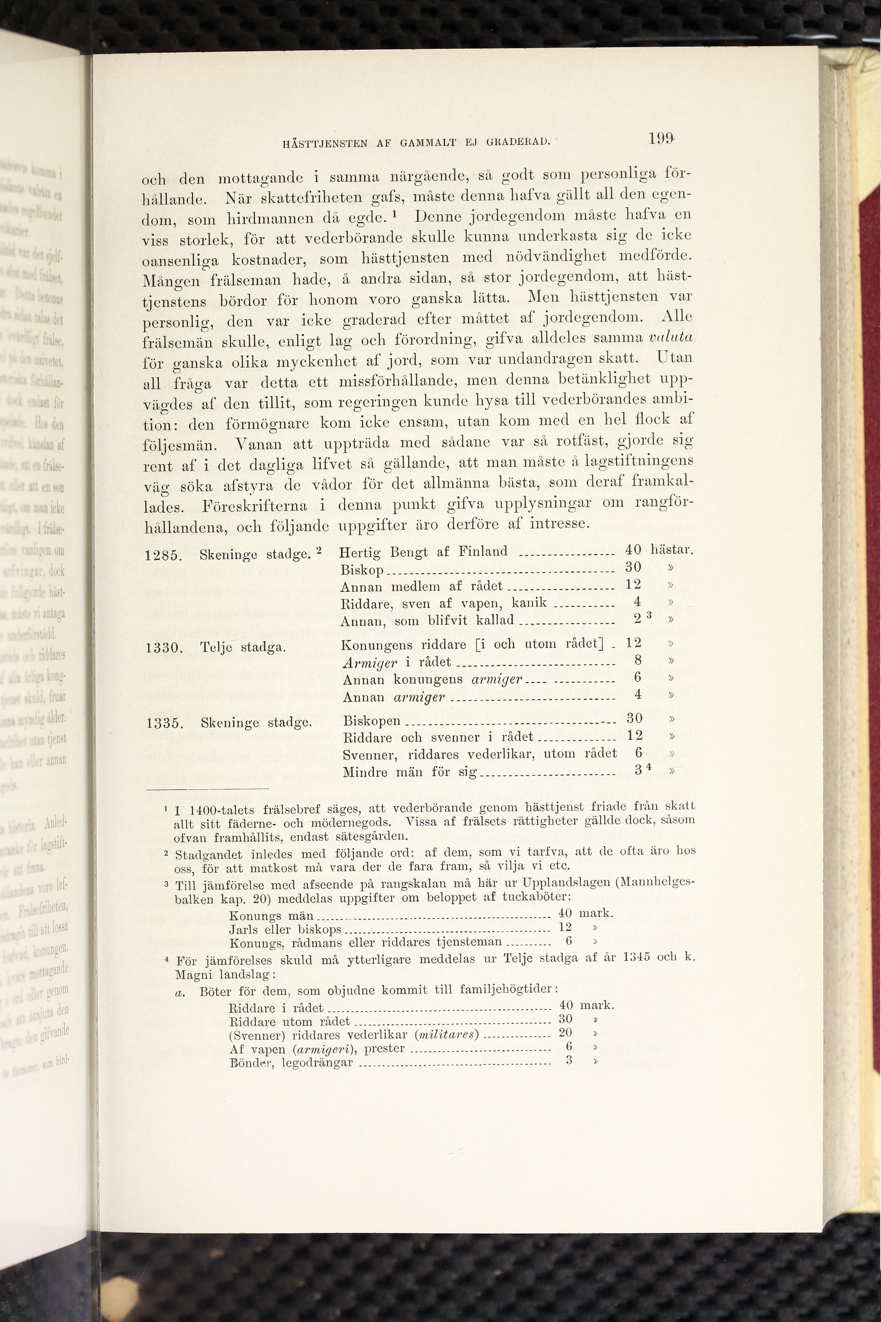 1 I 1400-talets frälsebref säges, att vederbörande genom hästtjenst friade från skatt