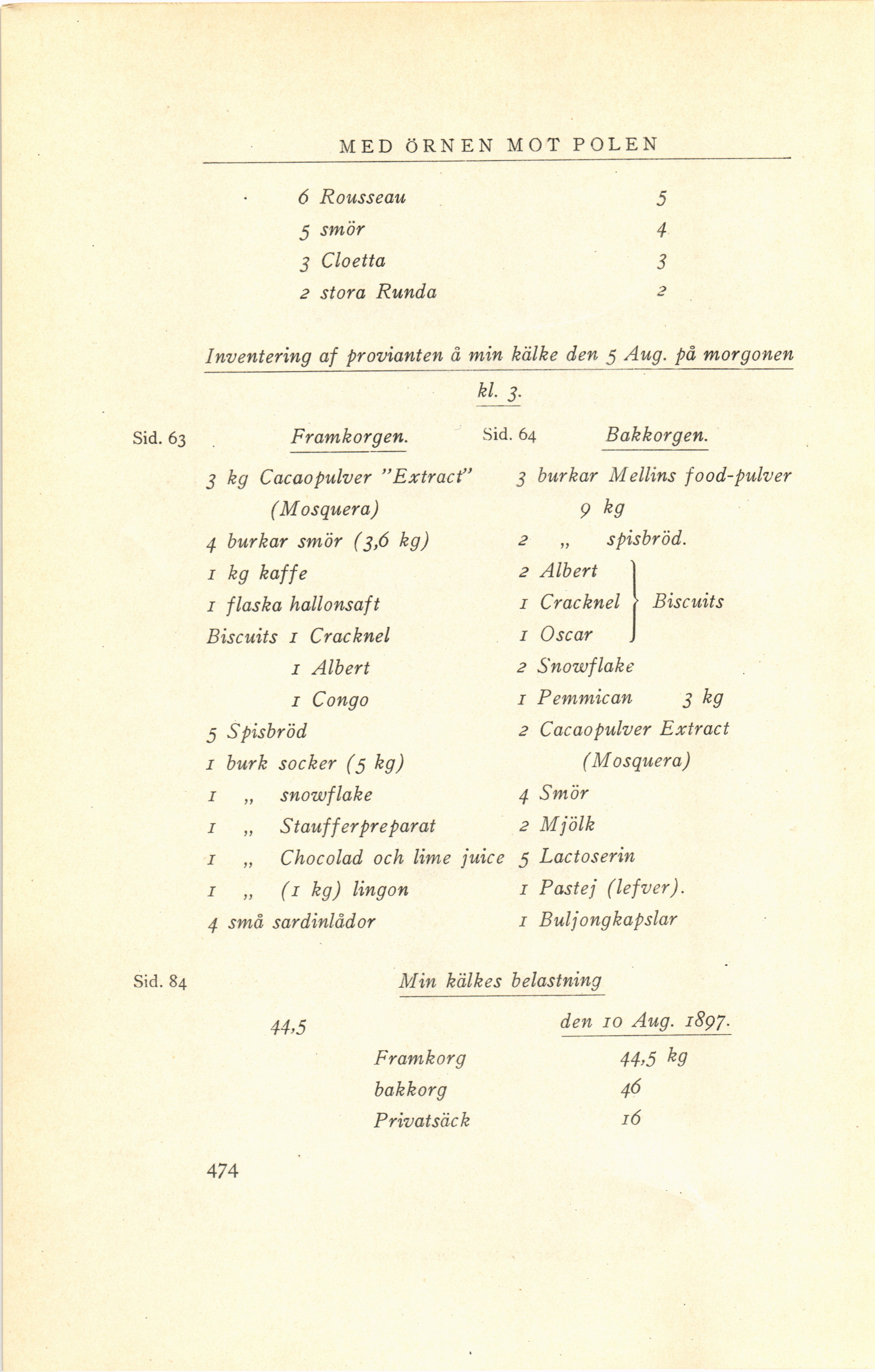 Inventering aj provianten å min kälke den 5 Aug. på morgonen