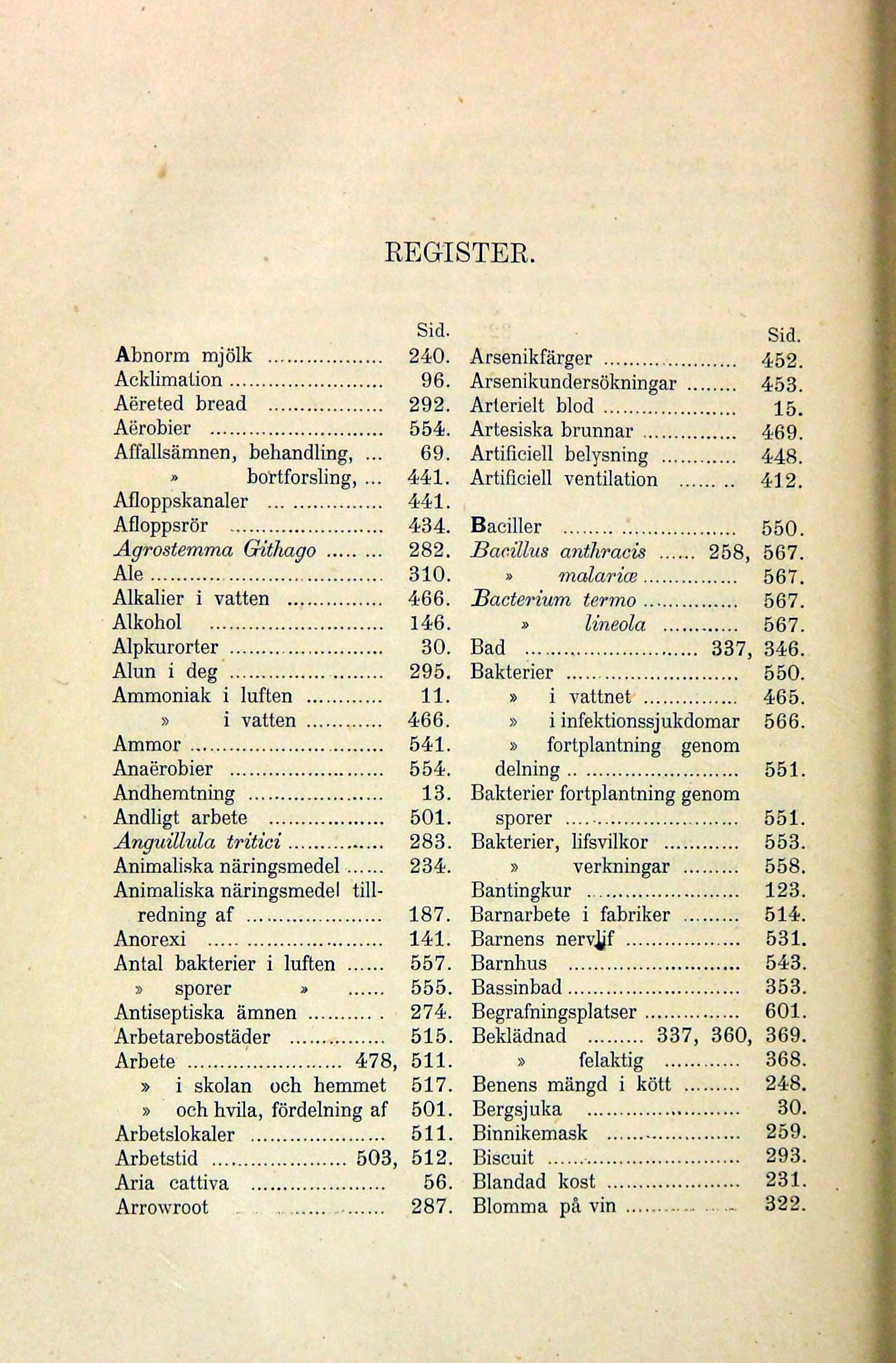 Abnorm mjölk 240. Arsenikfärger 452.