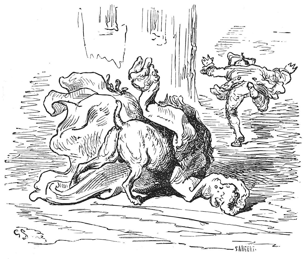 förfärligt. Fåfängt sökte vi med hugg och slag förmå pelsen att taga