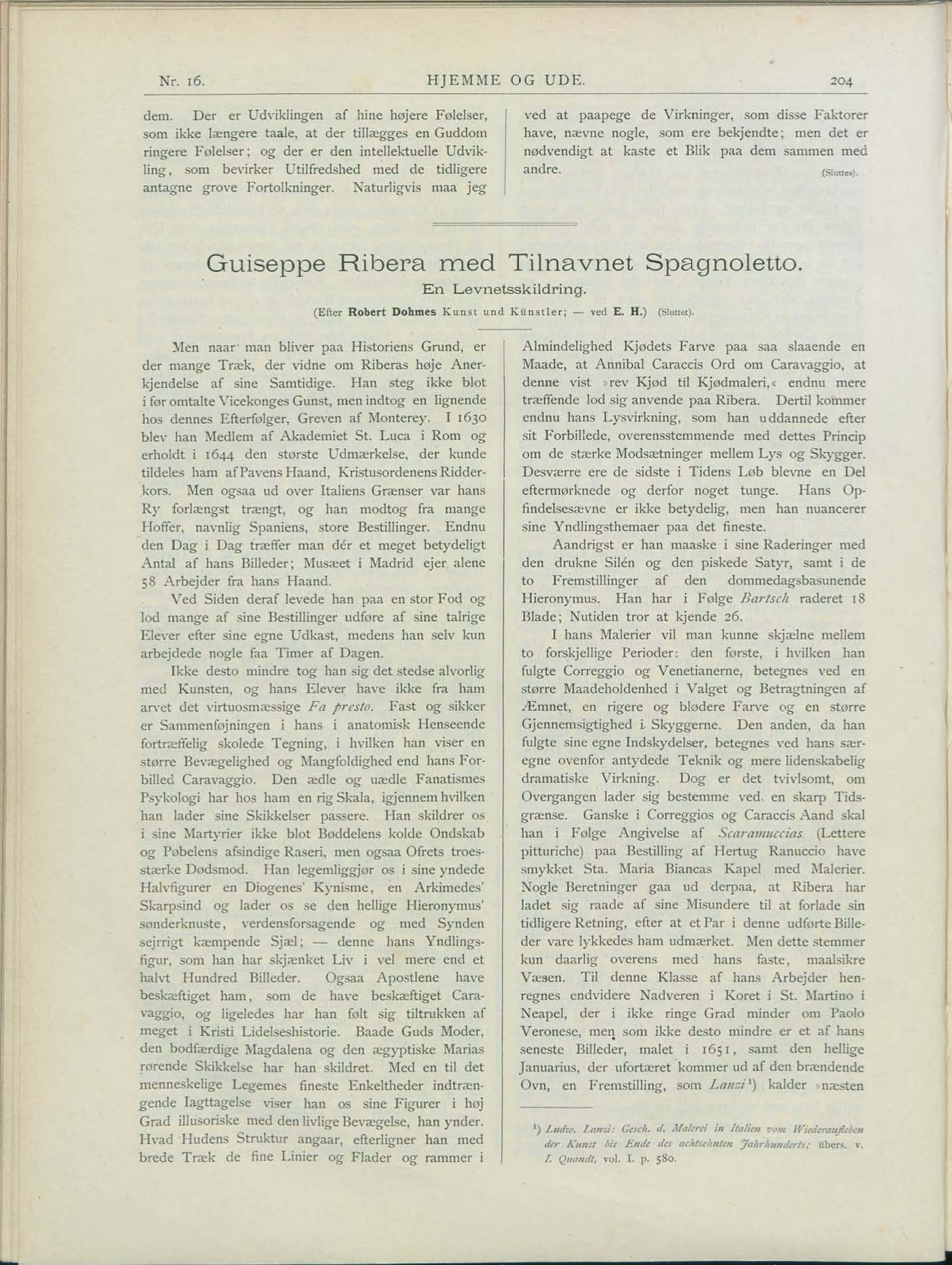 Full resolution (JPEG) - On this page / på denna sida - Nr. 16. 18. Januar 1885 - Spencer, Herbert. Religion. Et Tilbageblik og et Fremblik. Oversat af Dr. phil. Ad. Hansen - Giuseppe Ribera med Tilnavnet Spagnoletto. En Levnetsskildring. Efter Robert Dohmes Kunst und Künstler ved E. H.