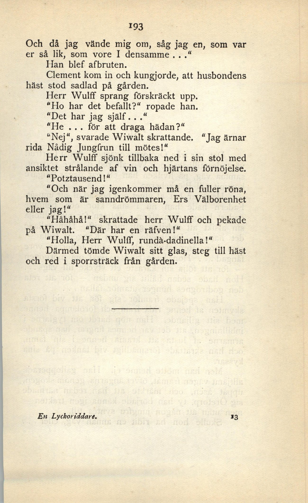 Därmed tömde Wiwalt sitt glas, steg till häst