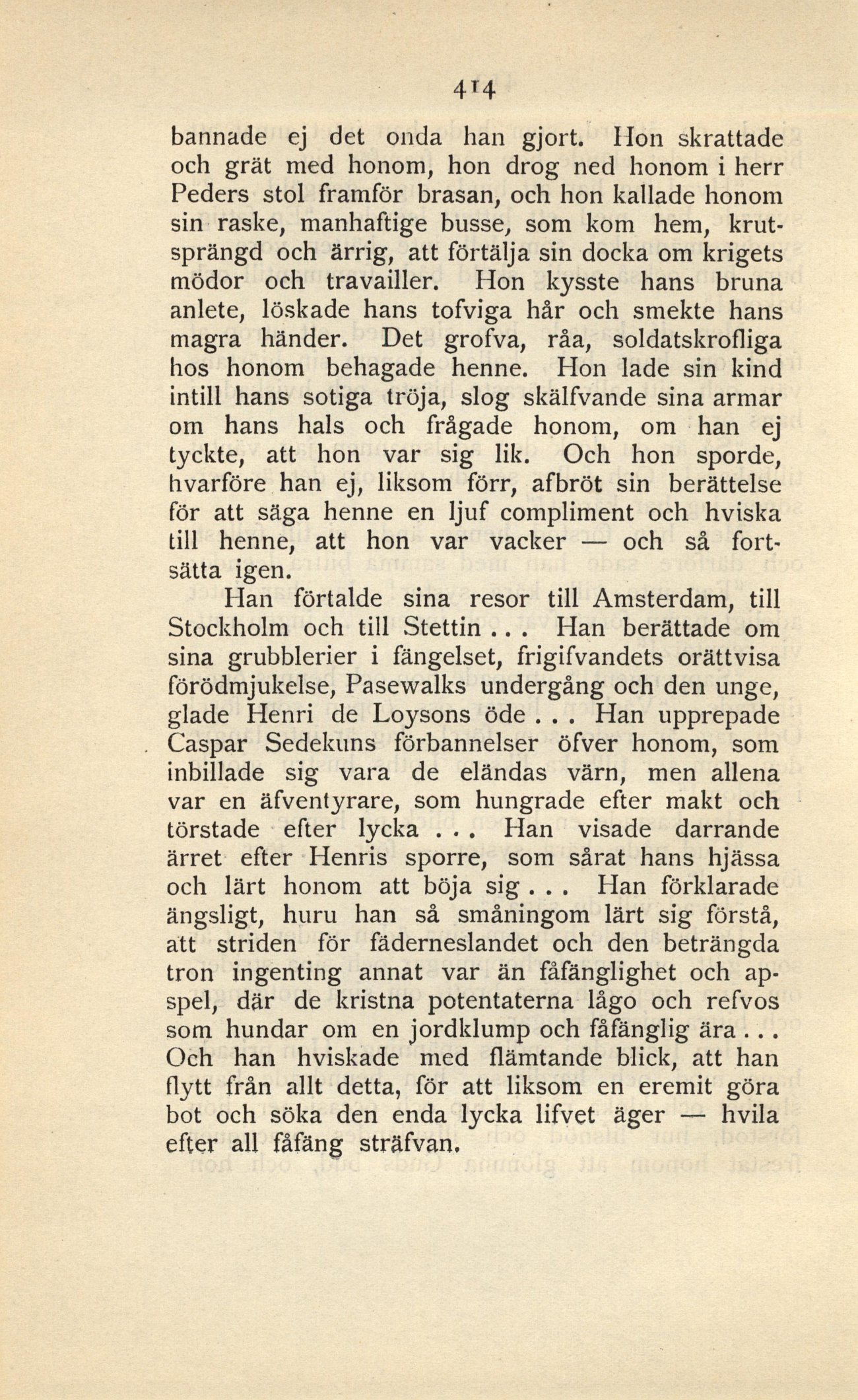 Peders stol framför brasan, och hon kallade honom