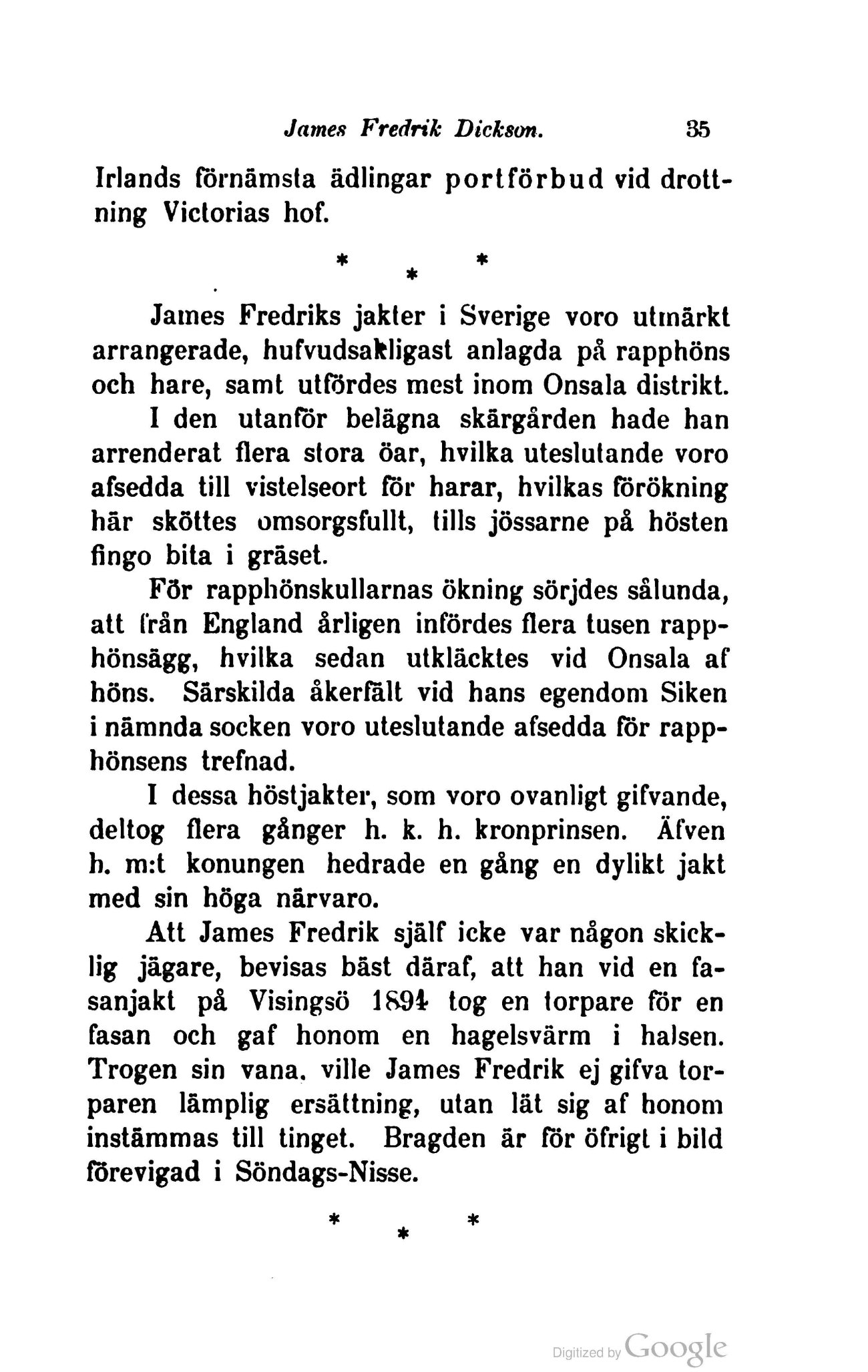 James Fredriks jakter i Sverige voro utmärkt