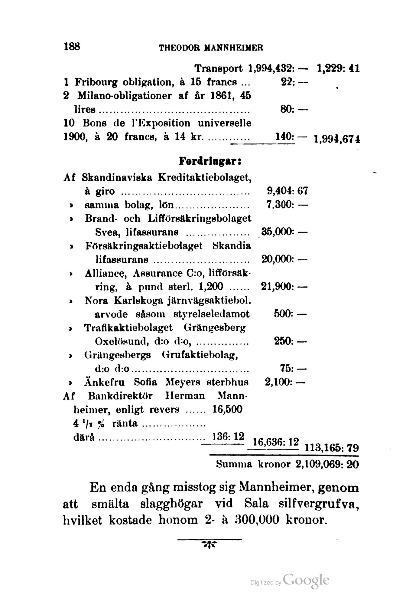 Summa kronor 2,109,069: 20