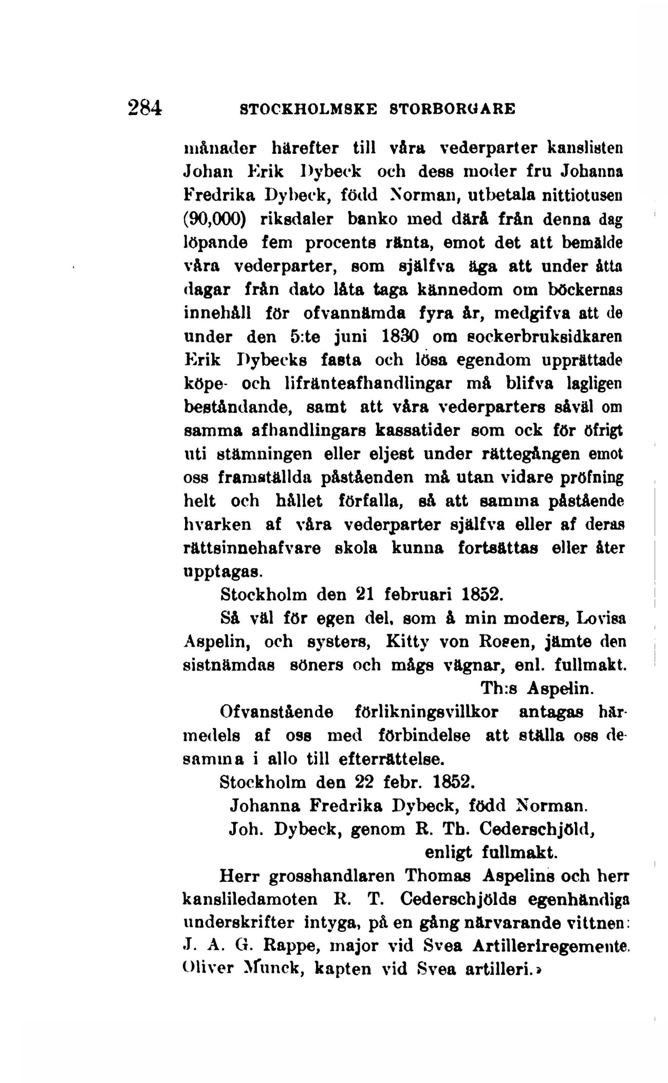 Stockholm den 21 februari 1852.