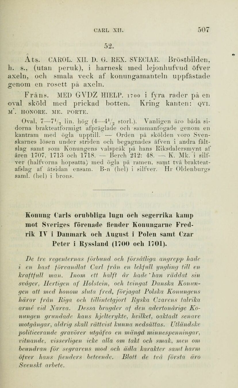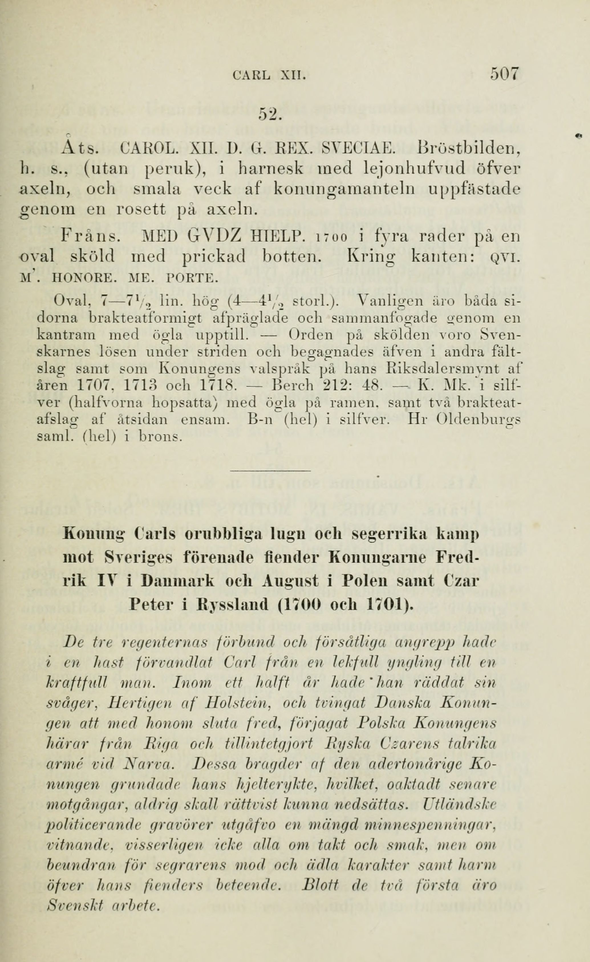 Åts. CAROL. XII. I). Cl. REX. SYECIAE. Bröstbilden,