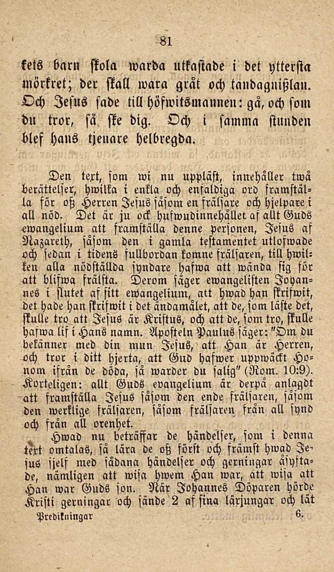 Full resolution (JPEG) - On this page / på denna sida - Sex Predikningar af Lektor P. Waldenström - 6. Söndagen den 21 Januari 1877. Matt. 8:1—13