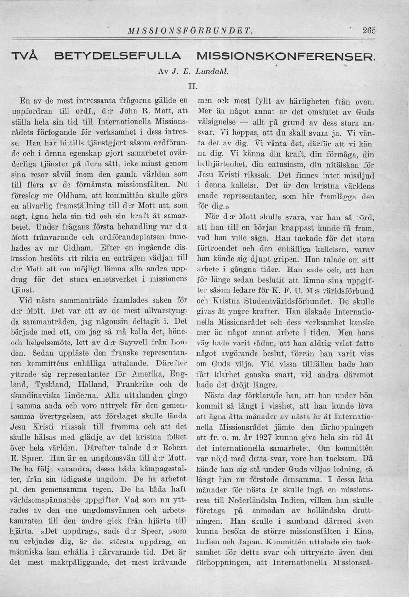 E. Speer. Han är en ungdomsvän till d :r Mott.