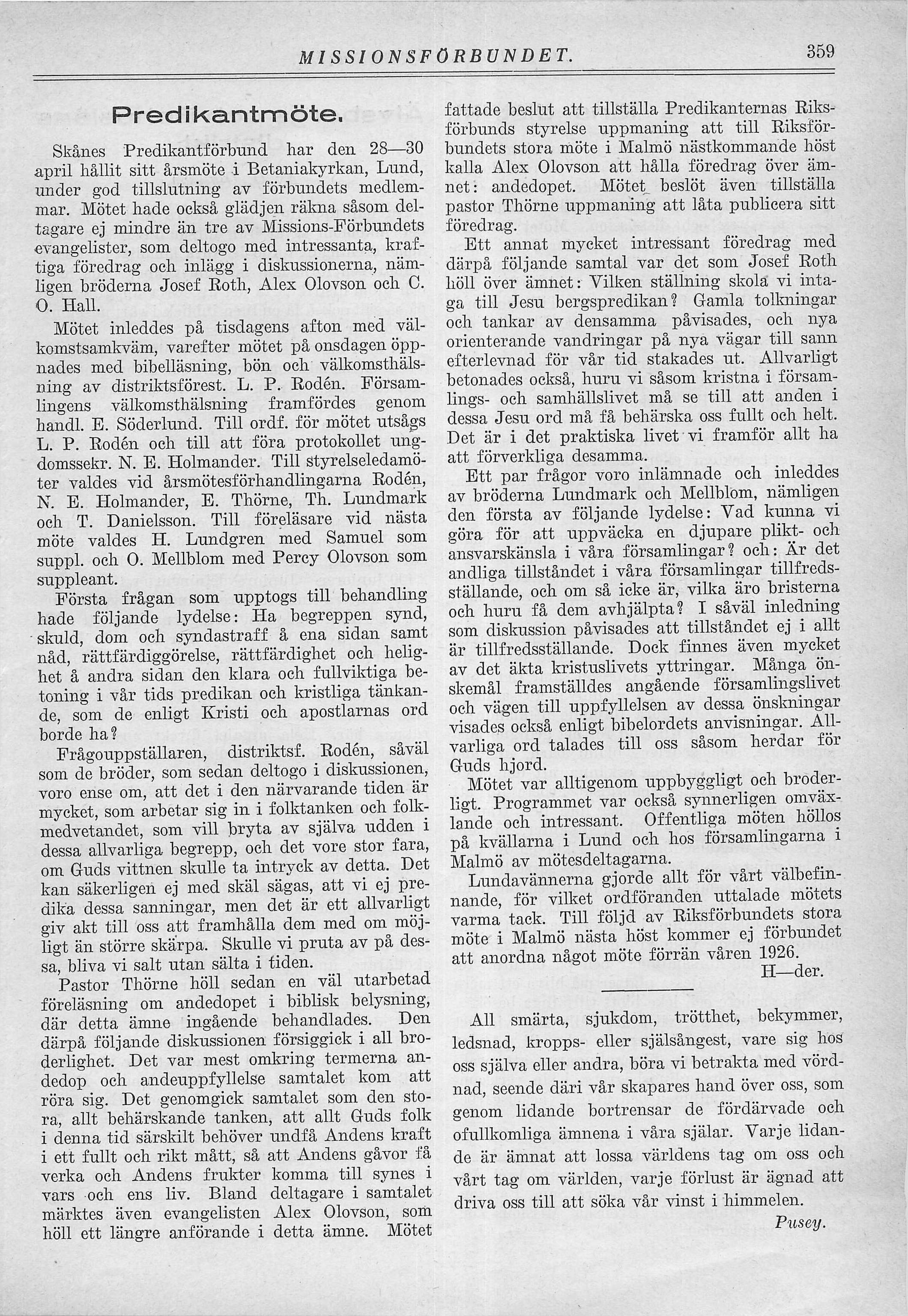 april hållit sitt årsmöte i Betaniakyrkan, Lund,