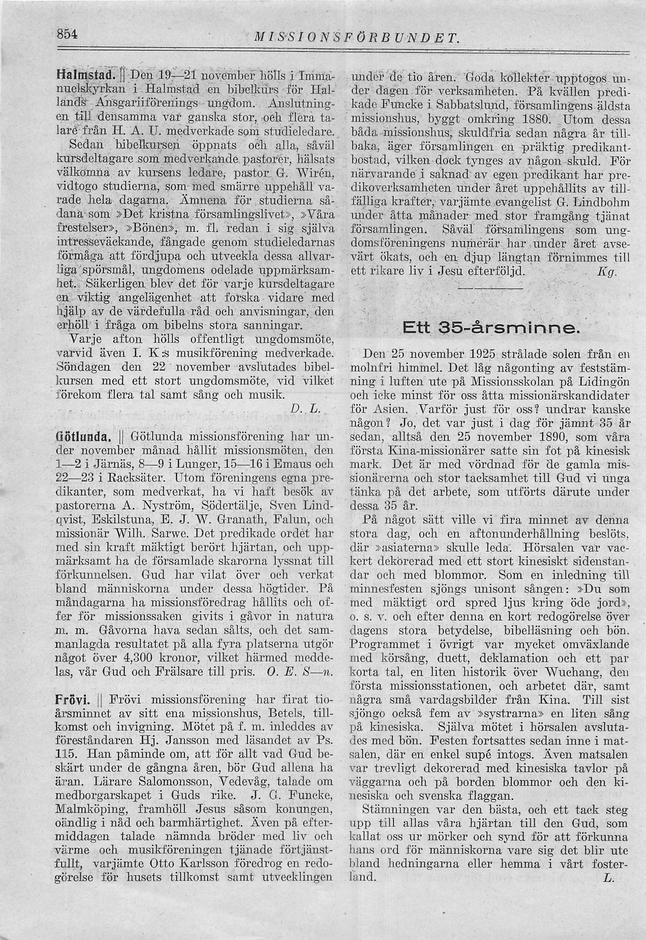 till-fälbga krafter, varjämte evangelist G. Lindbohm