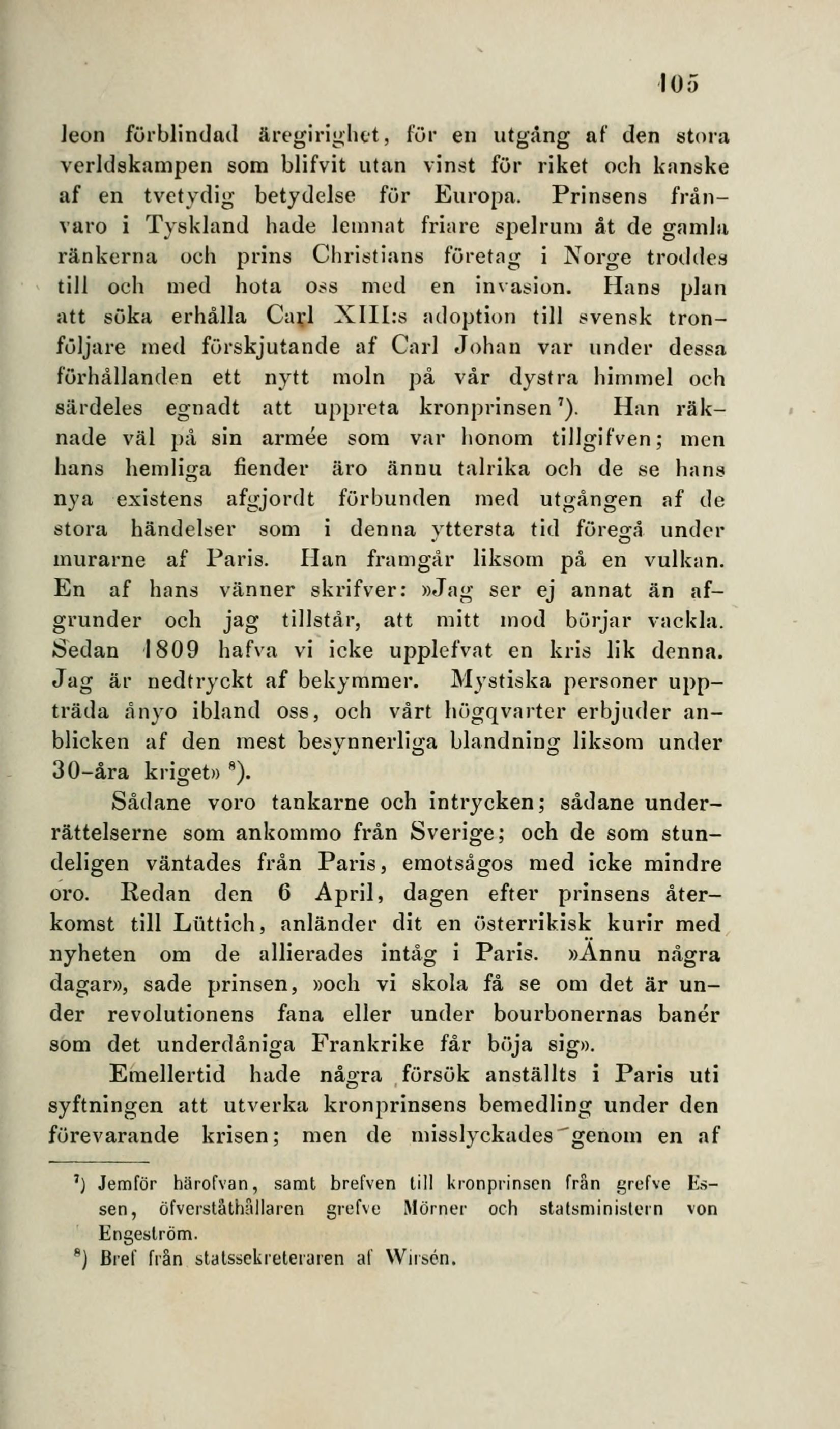 ’) Jemför härofvan, samt brefven till kronprinsen frän grefve