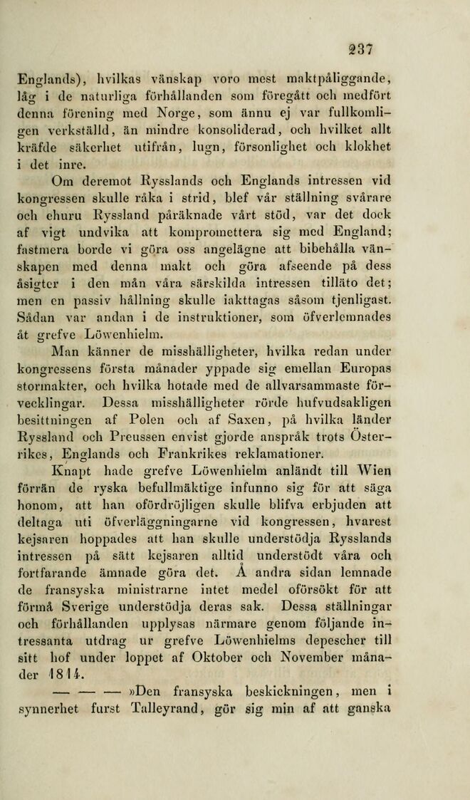 intressanta utdrag ur grefve Löwenhielms depescher till