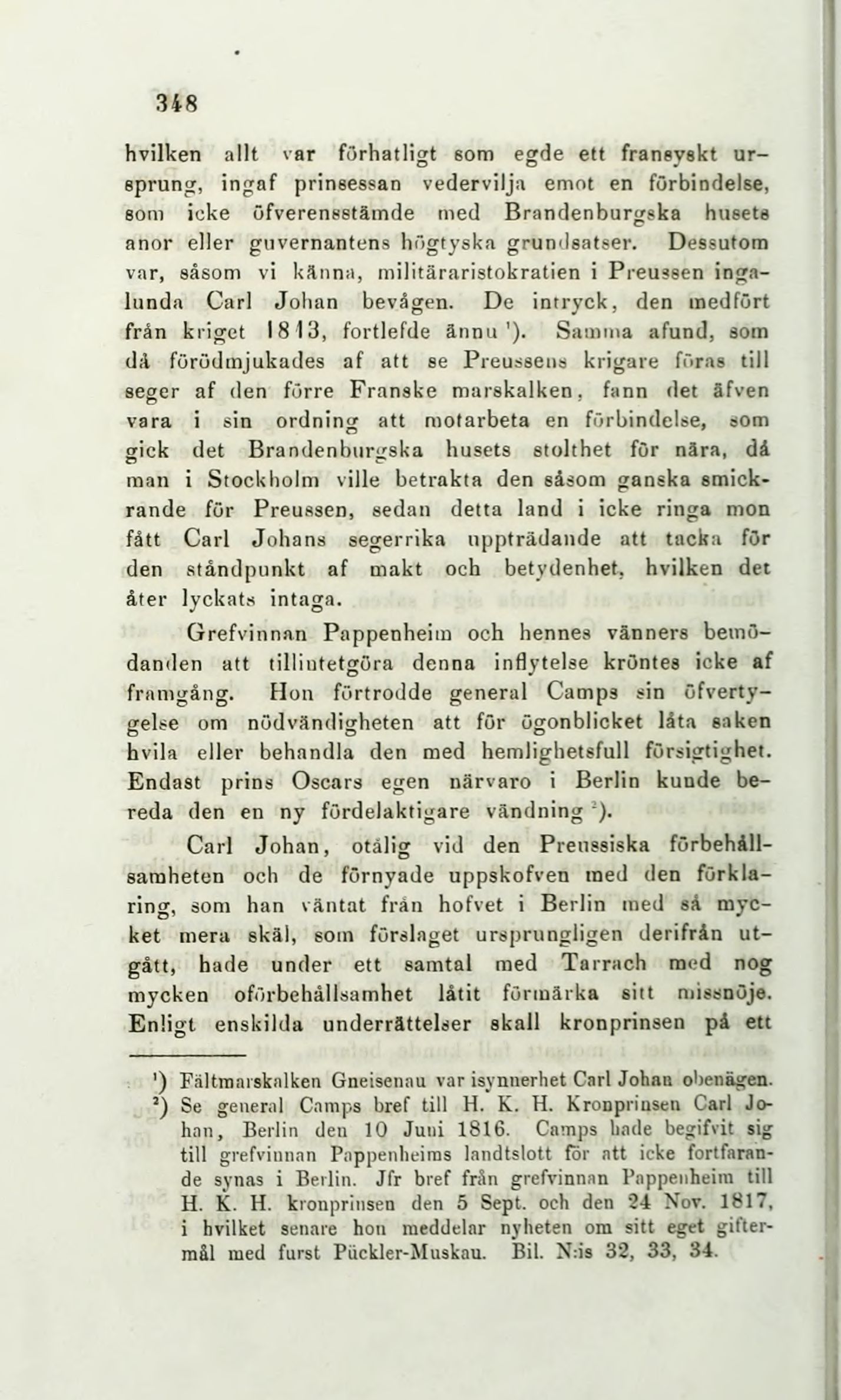 ’) Fältmarskalken Gneisenau var isynnerhet Carl Johan obenägen.