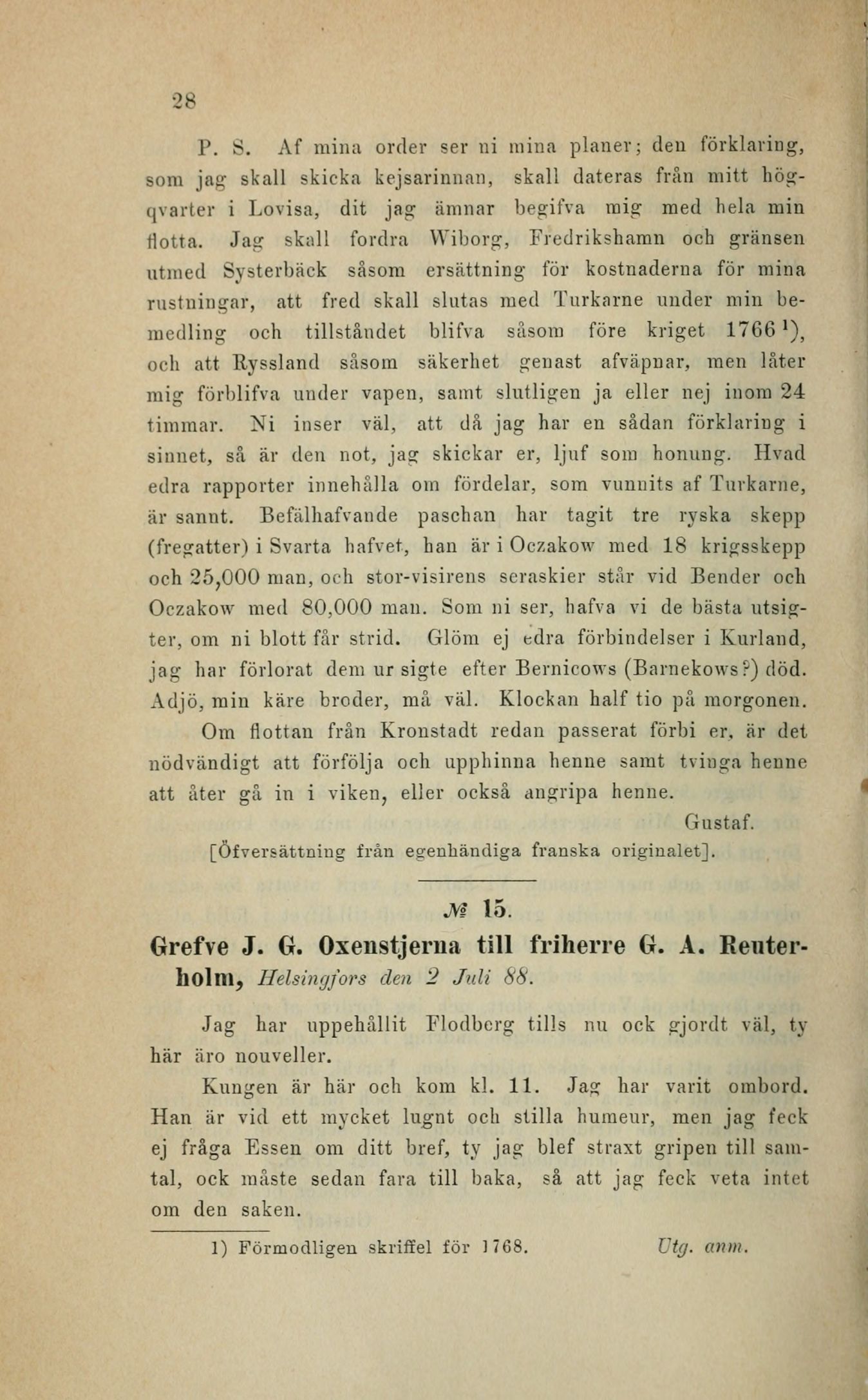 Grefve J. G. Oxenstjerna till friherre G. A.