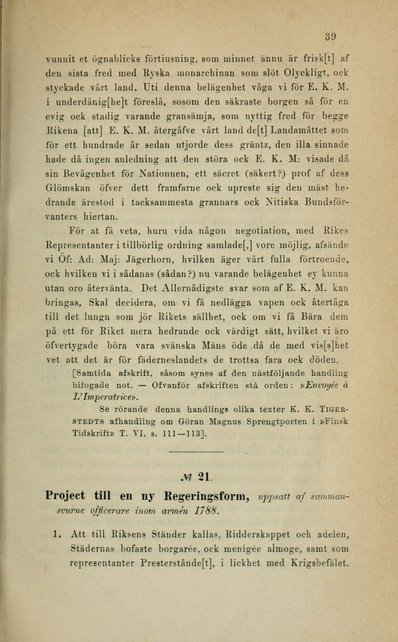 styckade vårt land. Uti denna belägenhet våga vi för E. K. M.