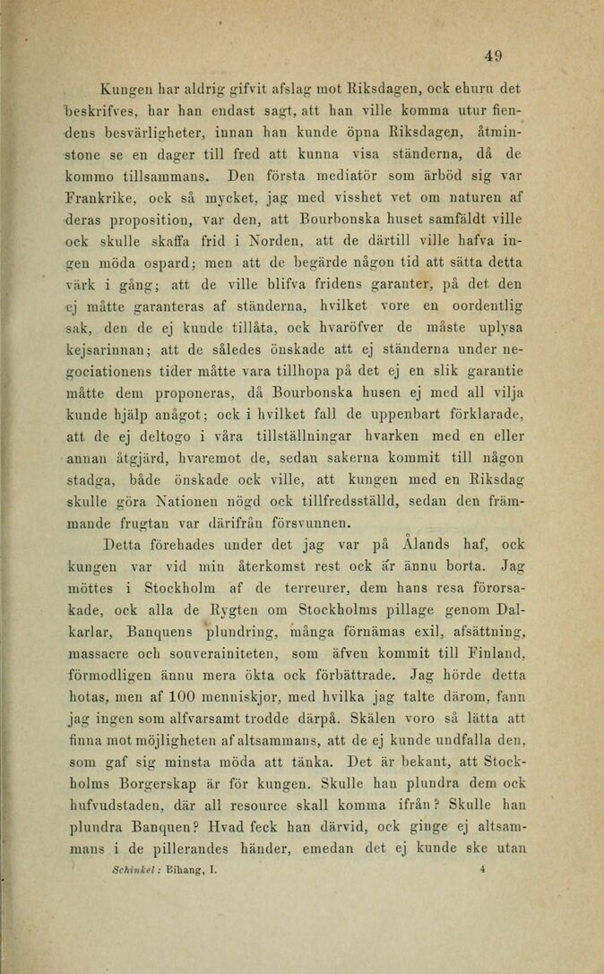 Kungen har aldrig gifvit afslag mot Riksdagen, ock ehuru det