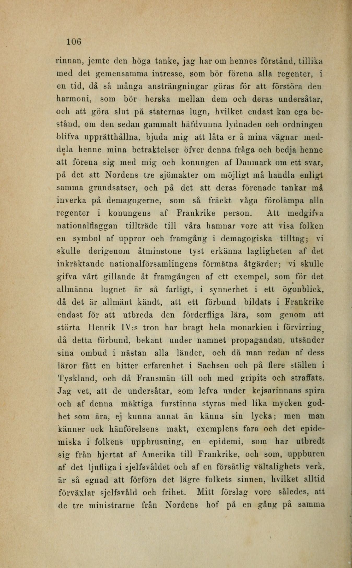 meddela henne mina betraktelser öfver denna fråga och bedja henne