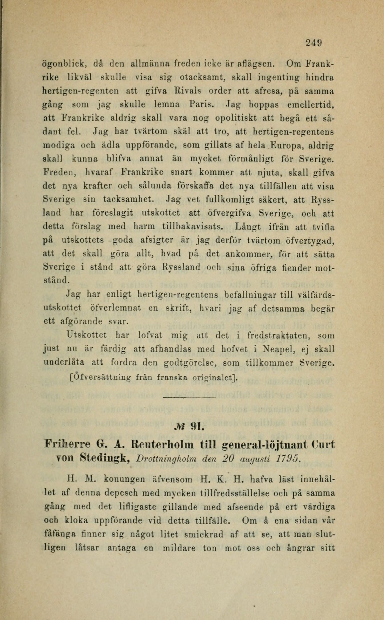 von Stedingk, Drottningholm den 20 augusti 1795.