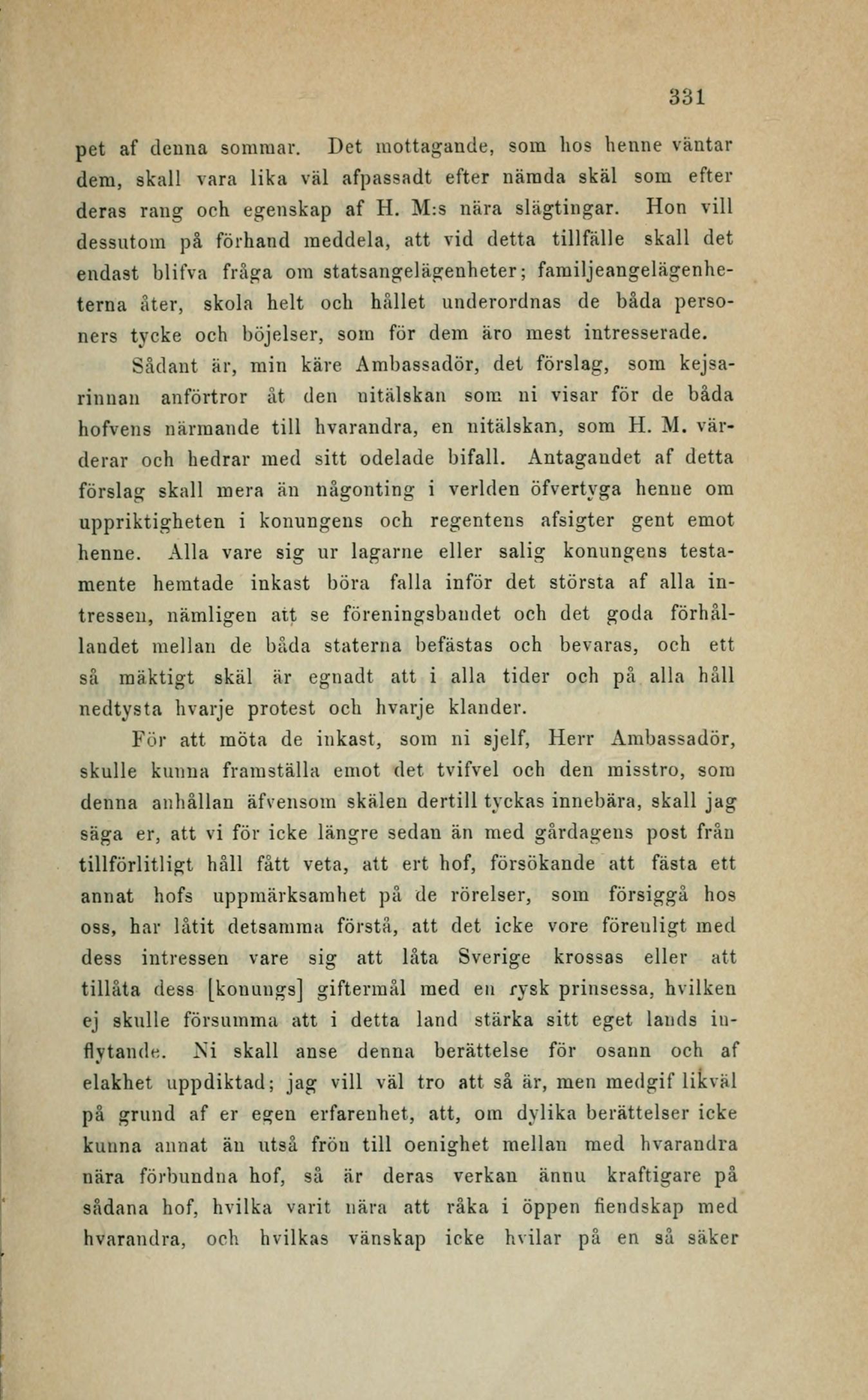 deras rang och egenskap af H. M:s nära slägtingar. Hon vill