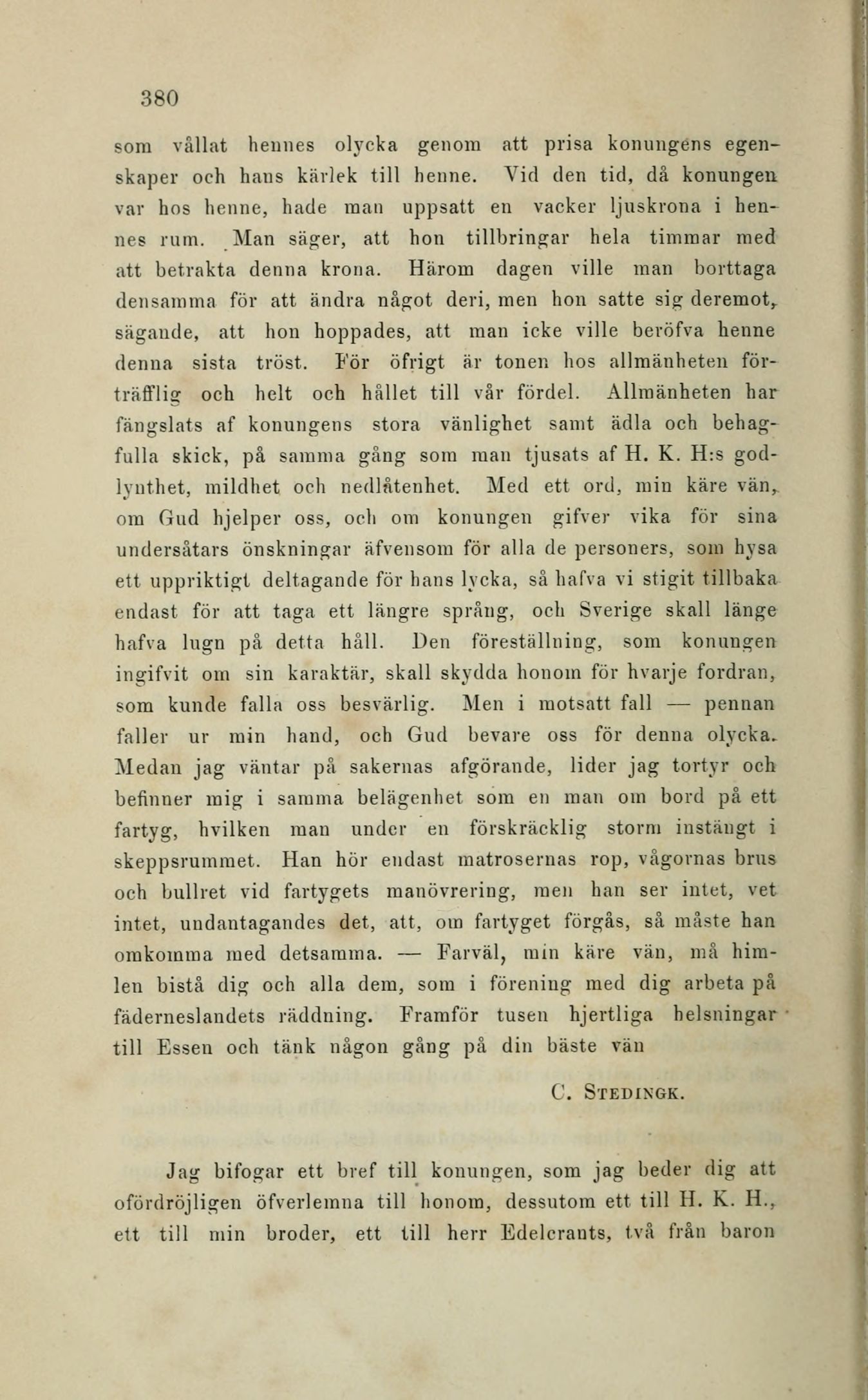 Jag bifogar ett bref till konungen, som jag beder dig att