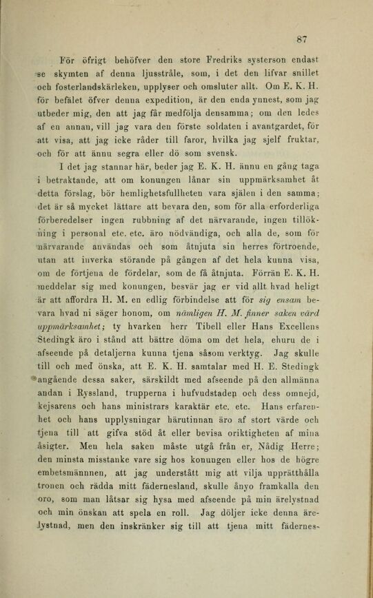 till och med önska, att E. K. H. samtalar med H. E. Stedingk