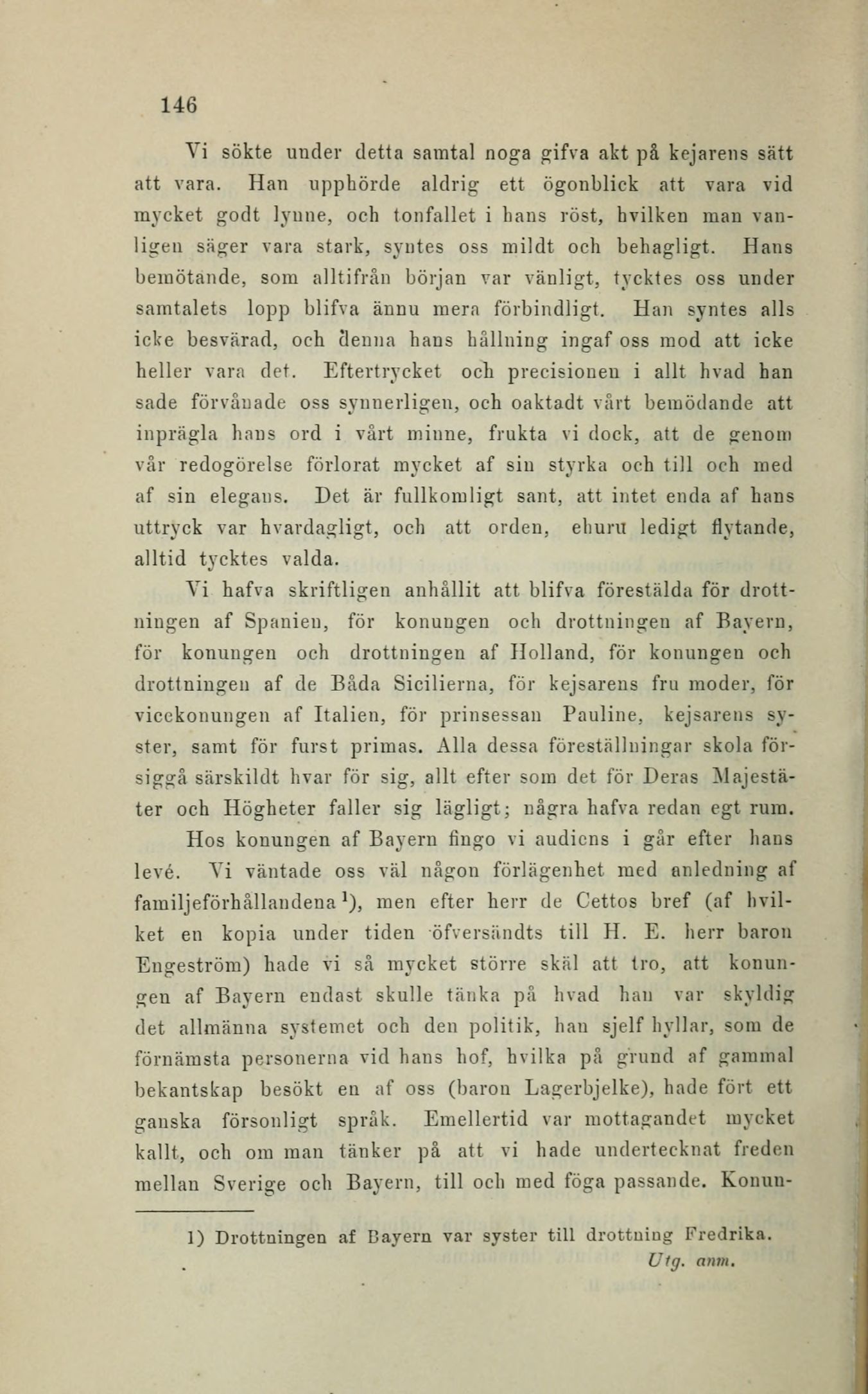 Vi sökte under detta samtal noga gifva akt på kejarens sätt