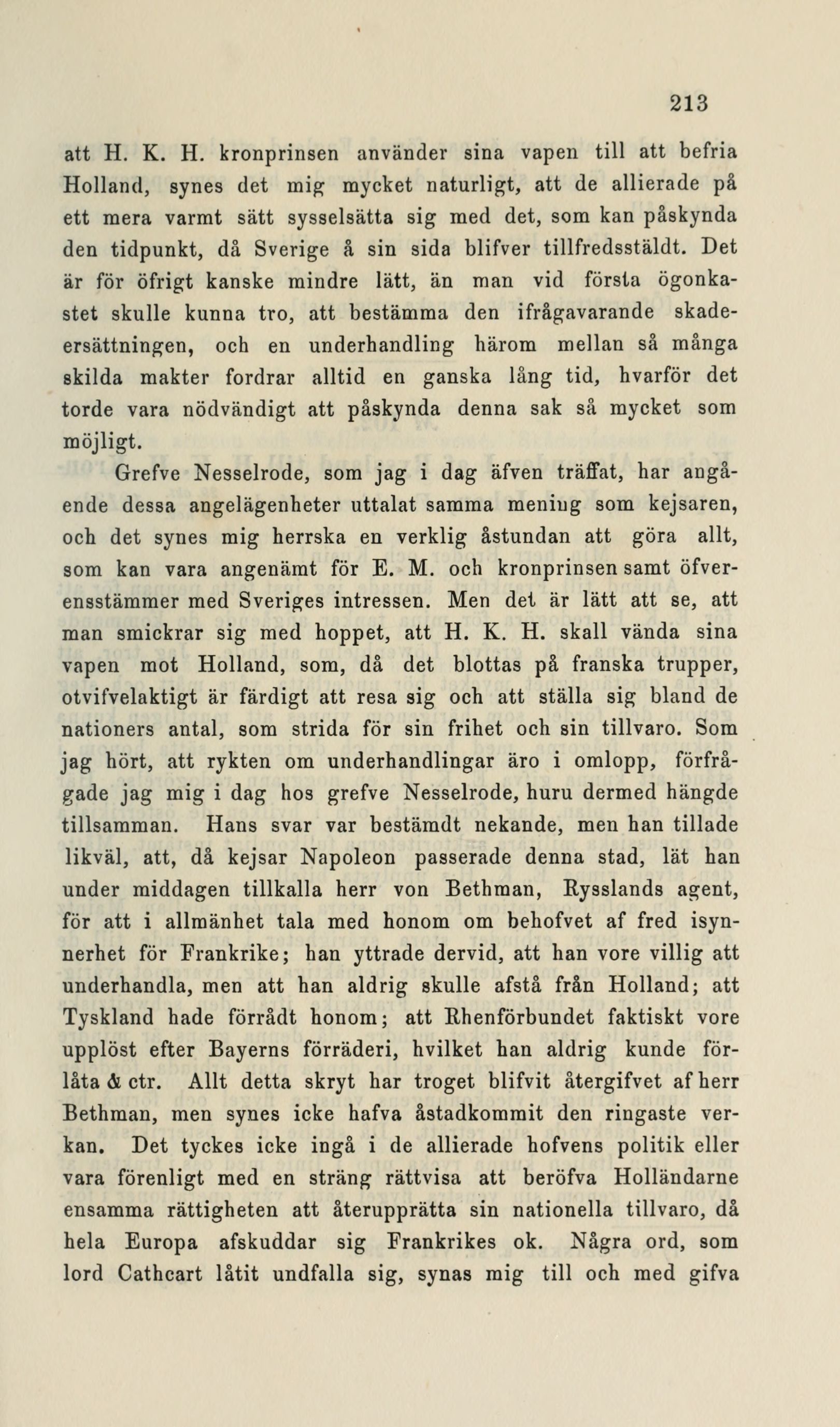 förfrågade jag mig i dag hos grefve Nesselrode, huru dermed hängde
