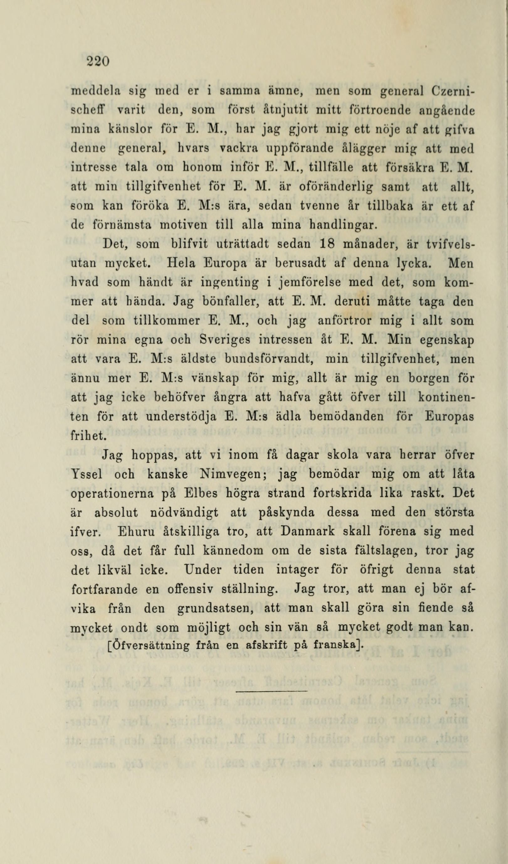 kommer att hända. Jag bönfaller, att E. M. deruti måtte taga den