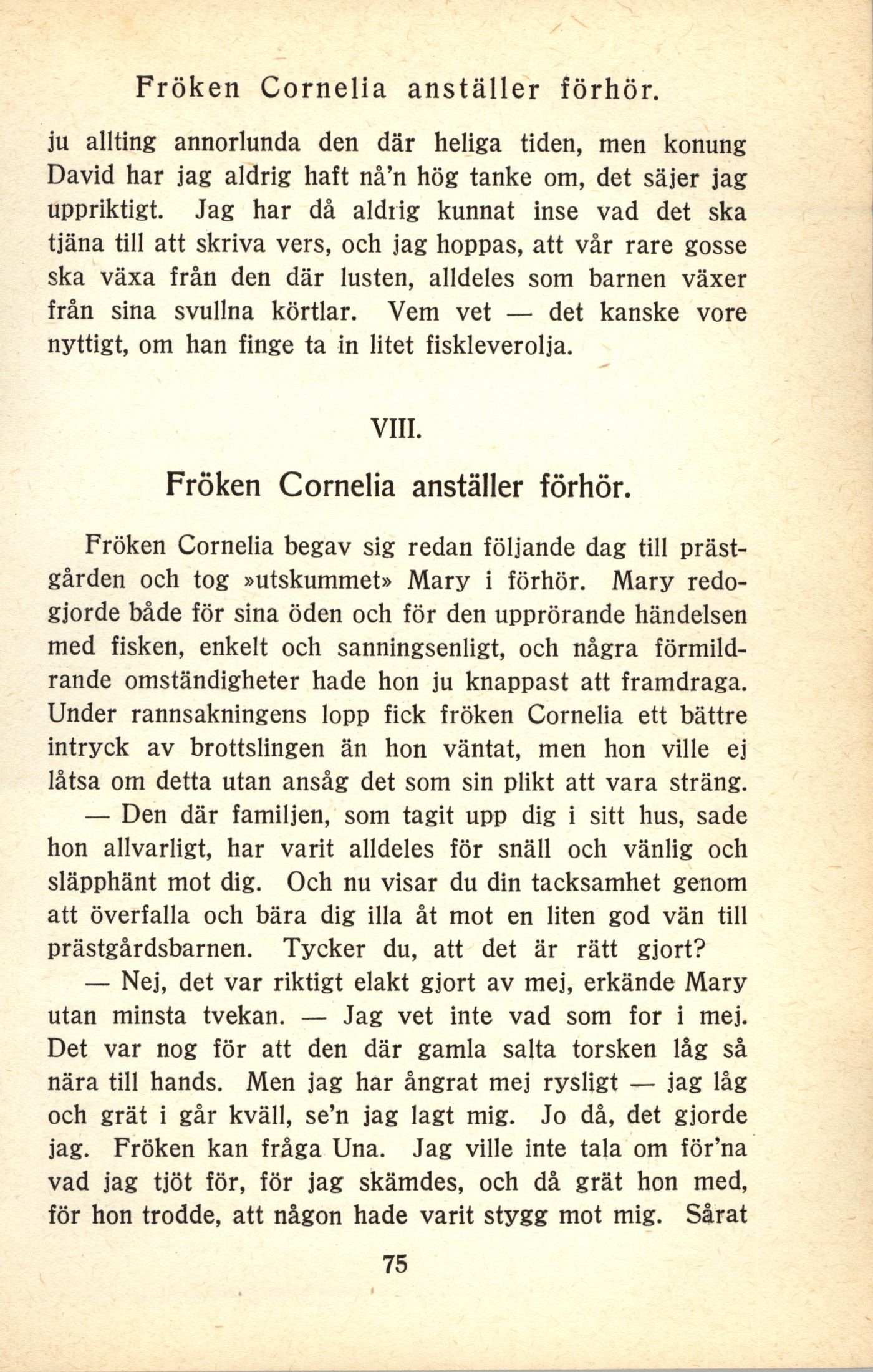 - VIII. Fröken Cornelia anställer förhör