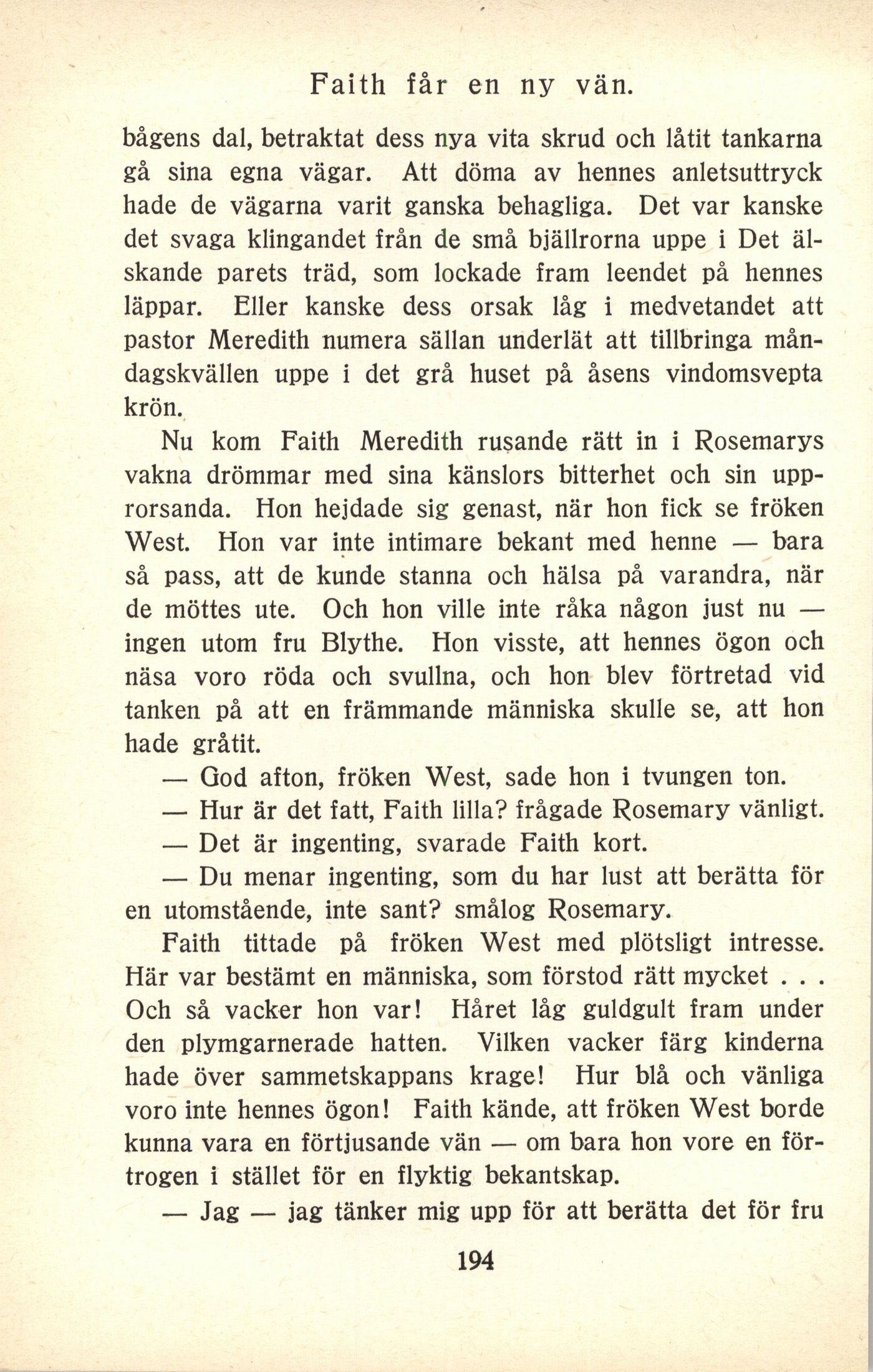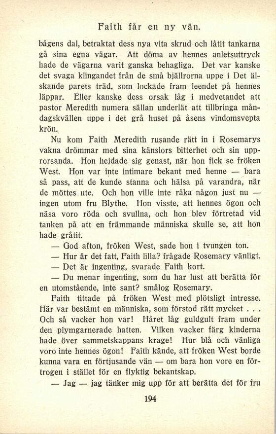 — Hur är det fatt, Faith lilla? frågade Rosemary vänligt.