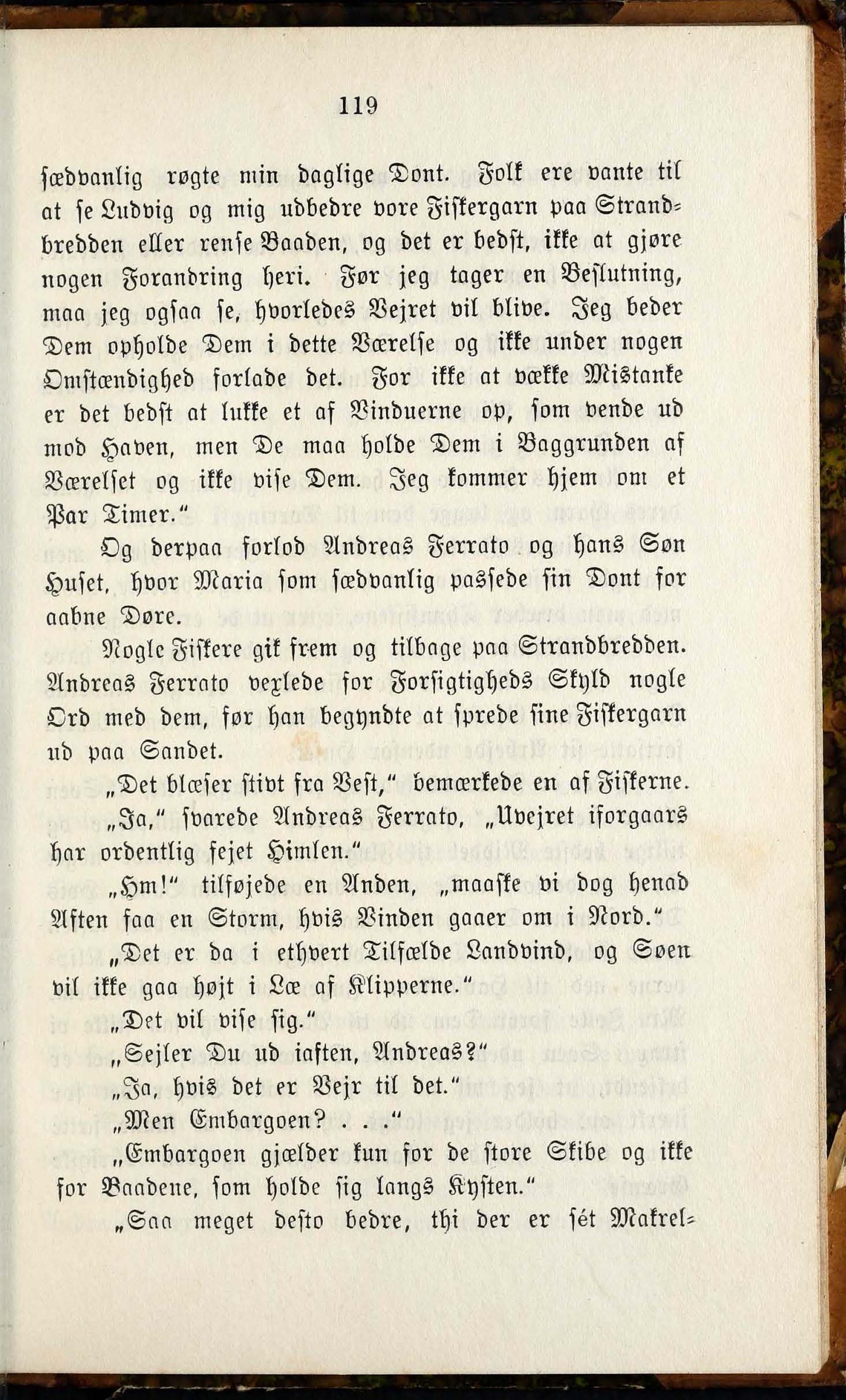»Det blæser stivt fra Vest,« bemærkede en af Fiskerne.