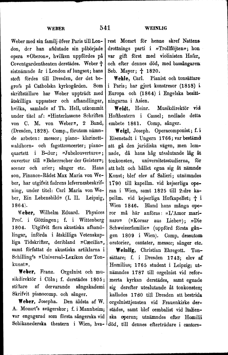 Full resolution (TIFF) - On this page / på denna sida - Weber, Gottfried - Weber, Wilhelm Eduard - Weber, Franz - Weber, Josepha - Wehle, Carl - Weidt, Heinr. - Weigl, Joseph - Weinlig, Christian Ehregott