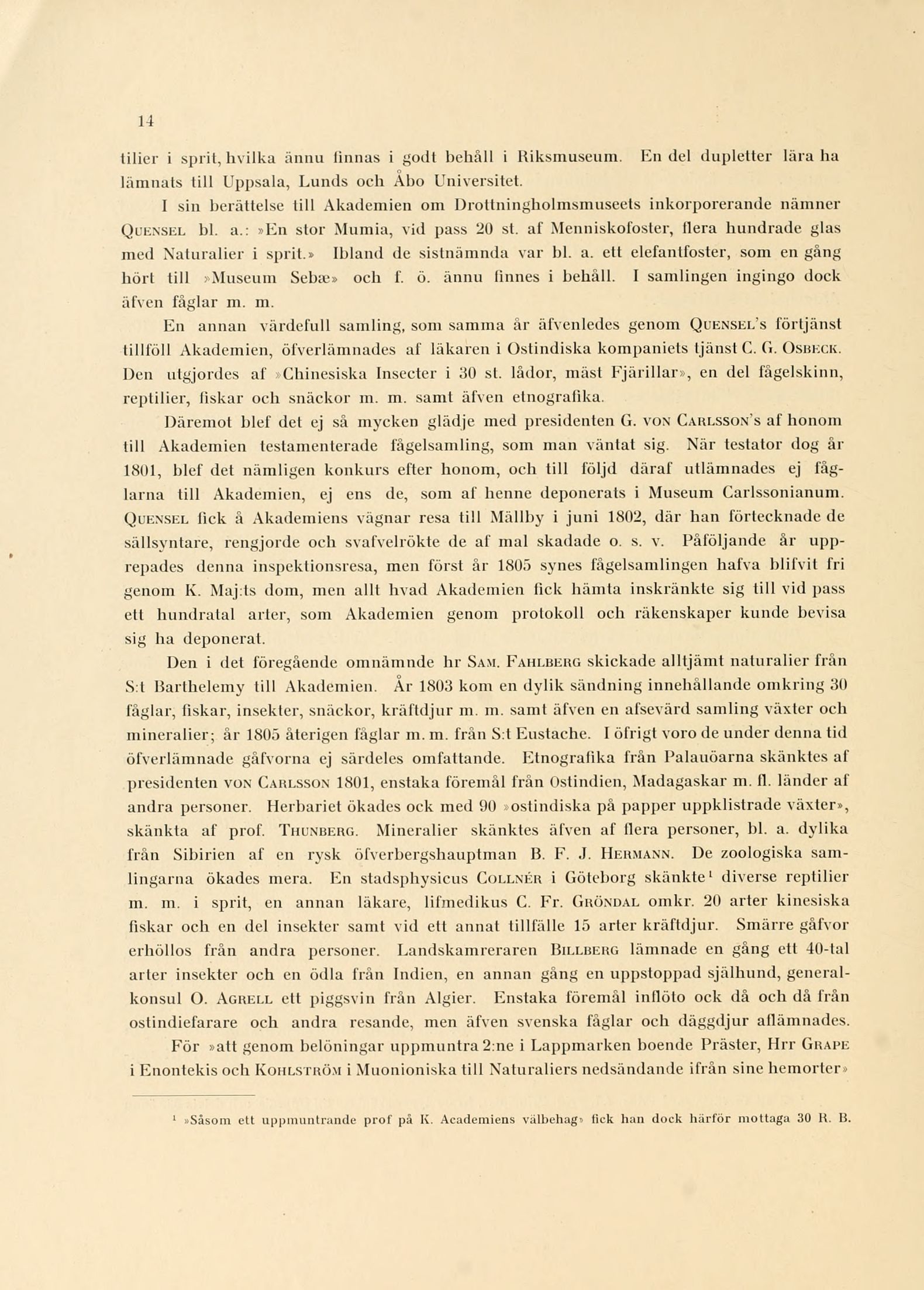 En annan värdefull samling, som samma år äfvenledes genom Quensel’s förtjänst