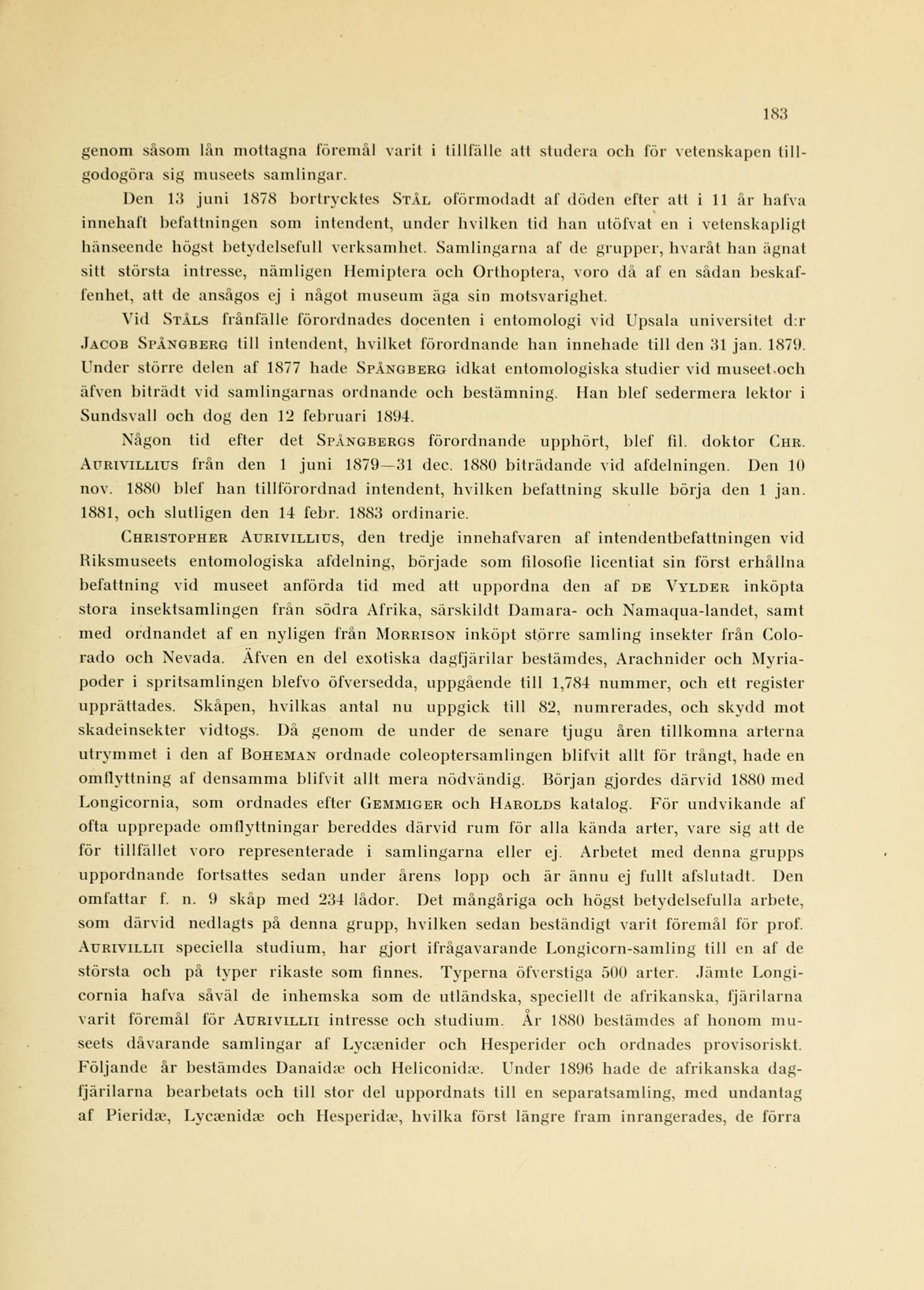 Aurivillius från den 1 juni 1879—31 dec. 1880 biträdande vid afdelningen. Den 10