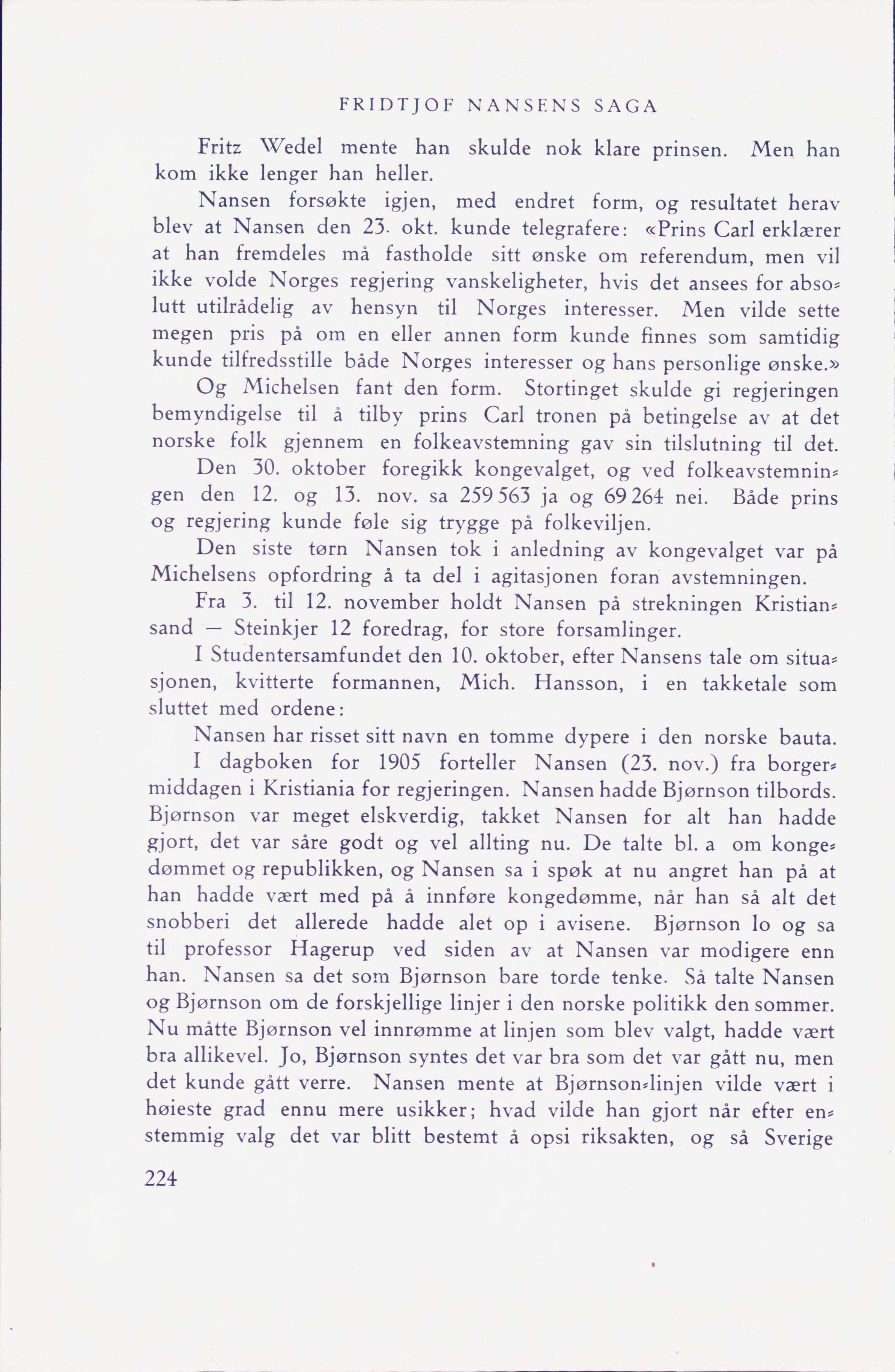 han. Nansen sa det som Bjørnson bare torde tenke. Så talte Nansen