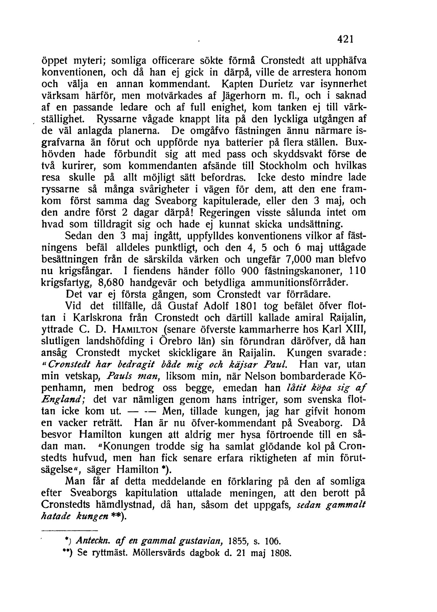 efter Sveaborgs kapitulation uttalade meningen, att den berott på