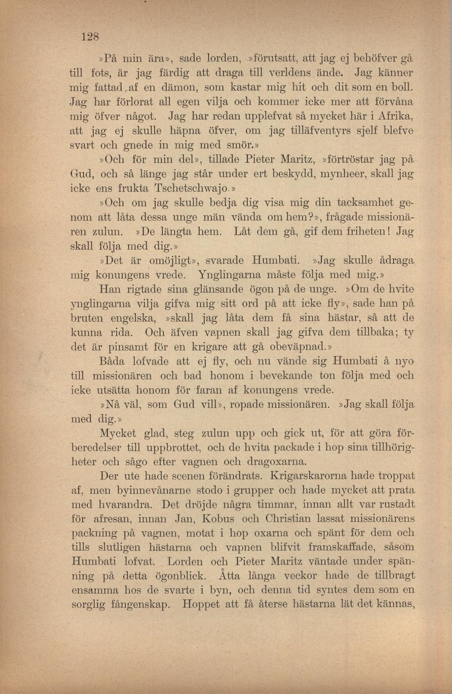 missionären zulun. »De längta hem. Låt dem gå, gif dem friheten! Jag