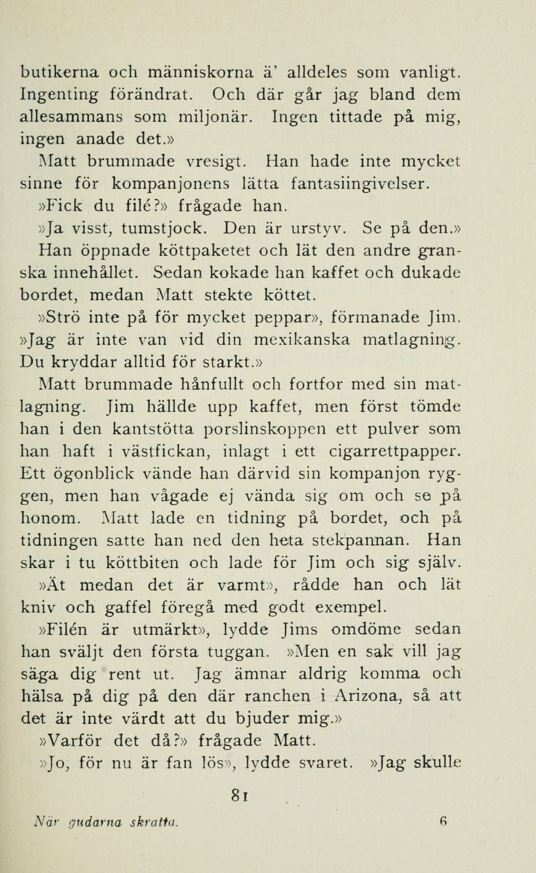 »Jo, för nu är fan lös», lydde svaret. »Jag skulle